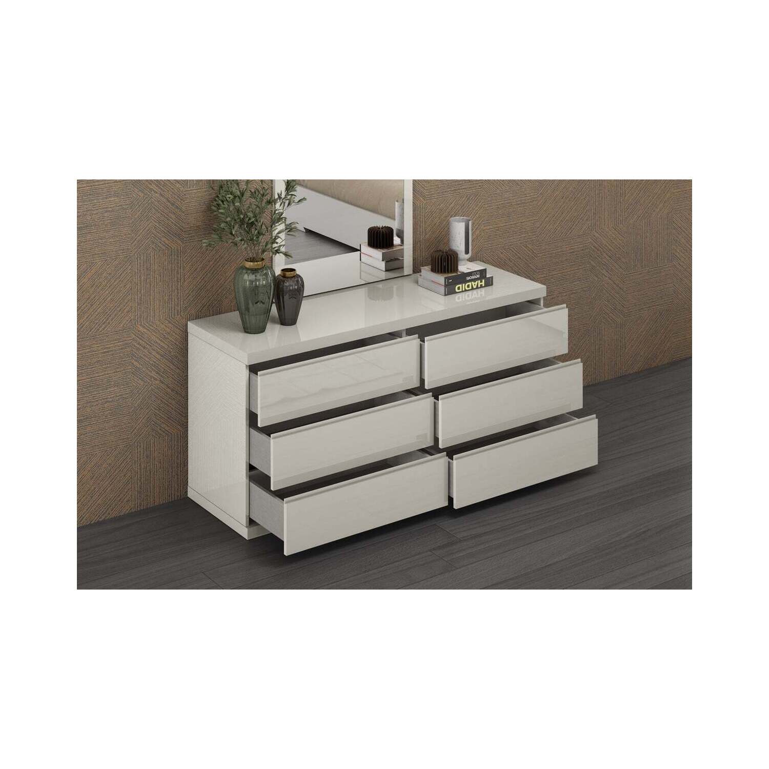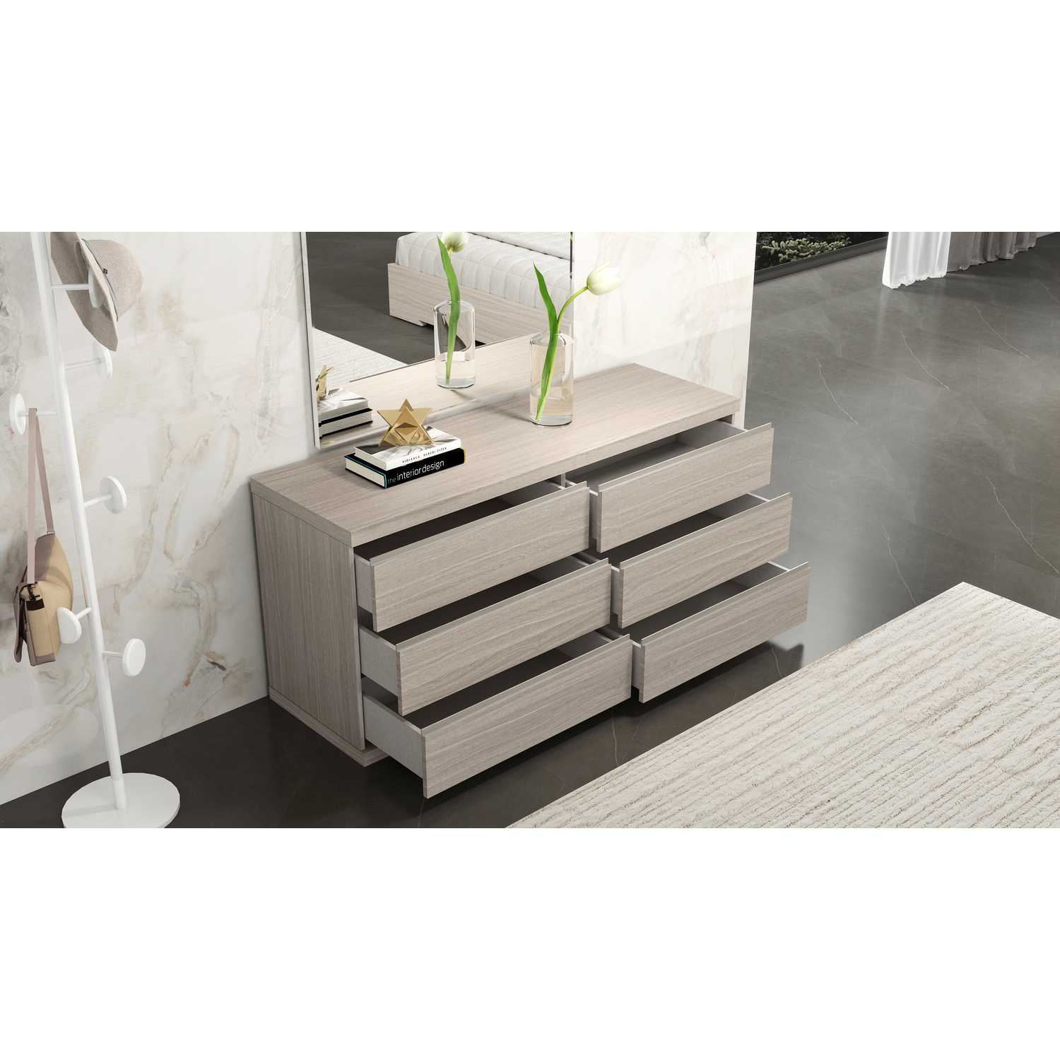 WhiteLine Anna Double Dresser, Matte White Oak Finish ILP-B82692MA , 6 Self-Closing Drawers., 0696576761690, DR1207D-OAK