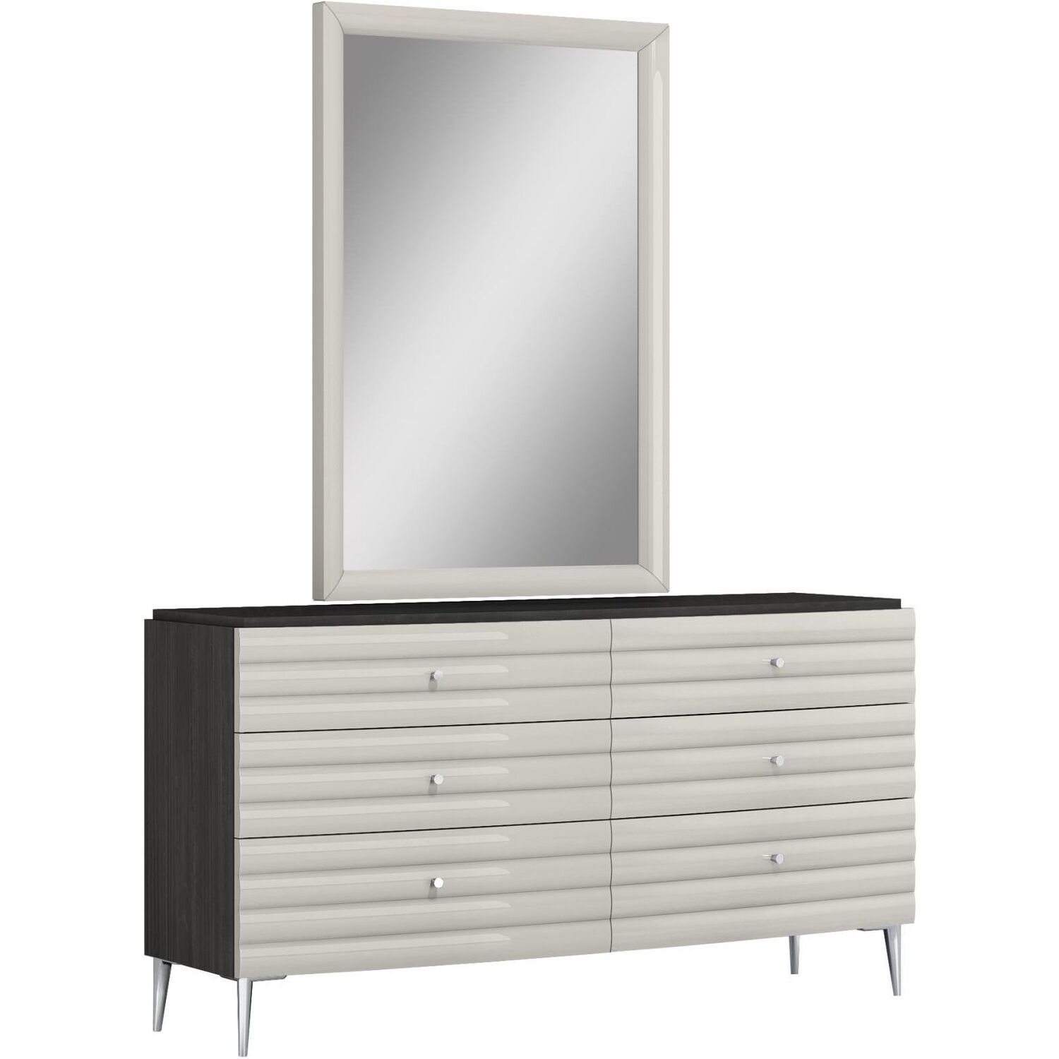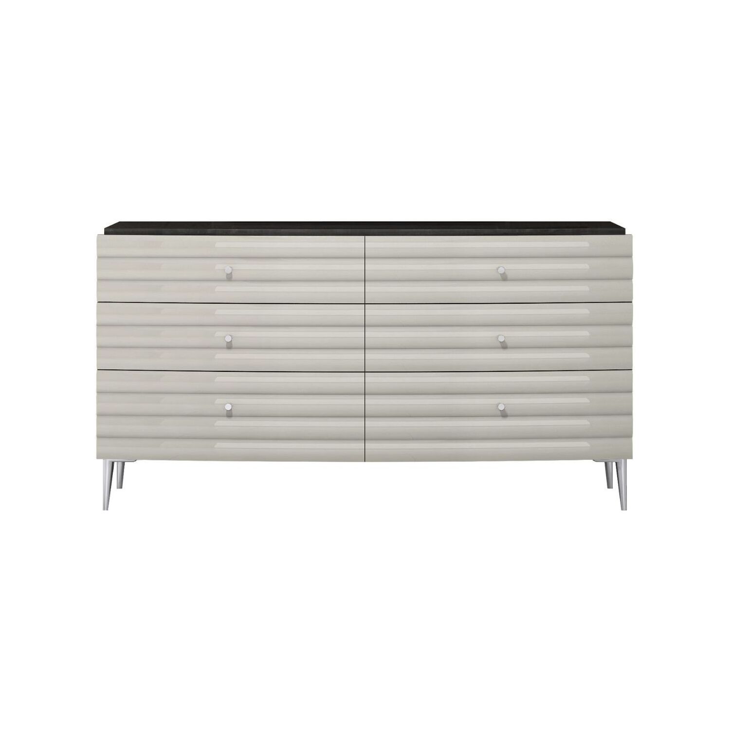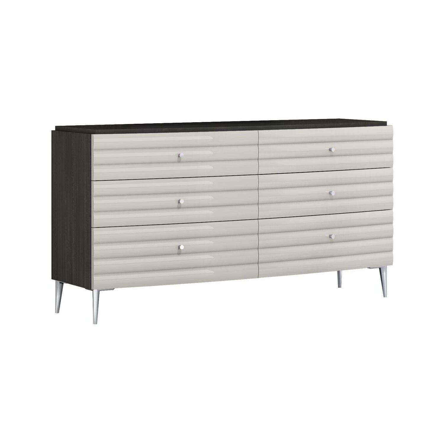 WhiteLine Pino Double Dresser, High Gloss Dark Grey Lacquer ILP-8273-4HG, 6 Self-Closing Drawers in High Gloss Light Grey ILP-8890213HG Lacquer and Silver Stainless Steel Handles, Silver Stainless Steel Legs., 0696576754821, DR1752-DGRY/LGRY