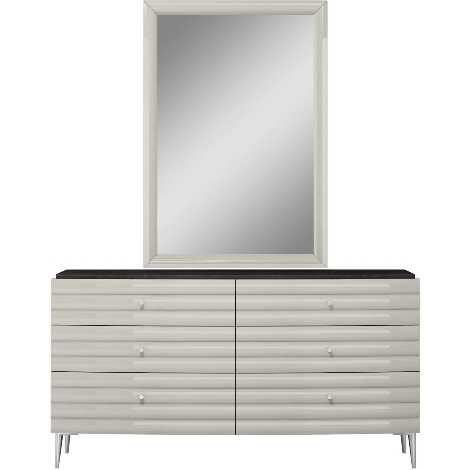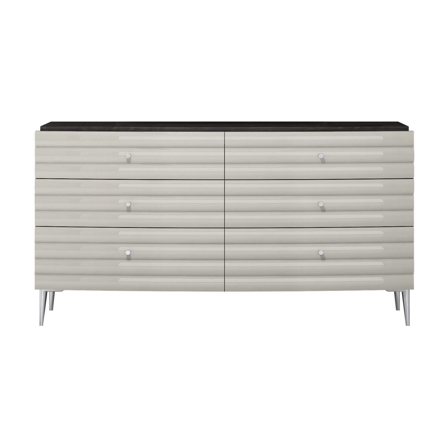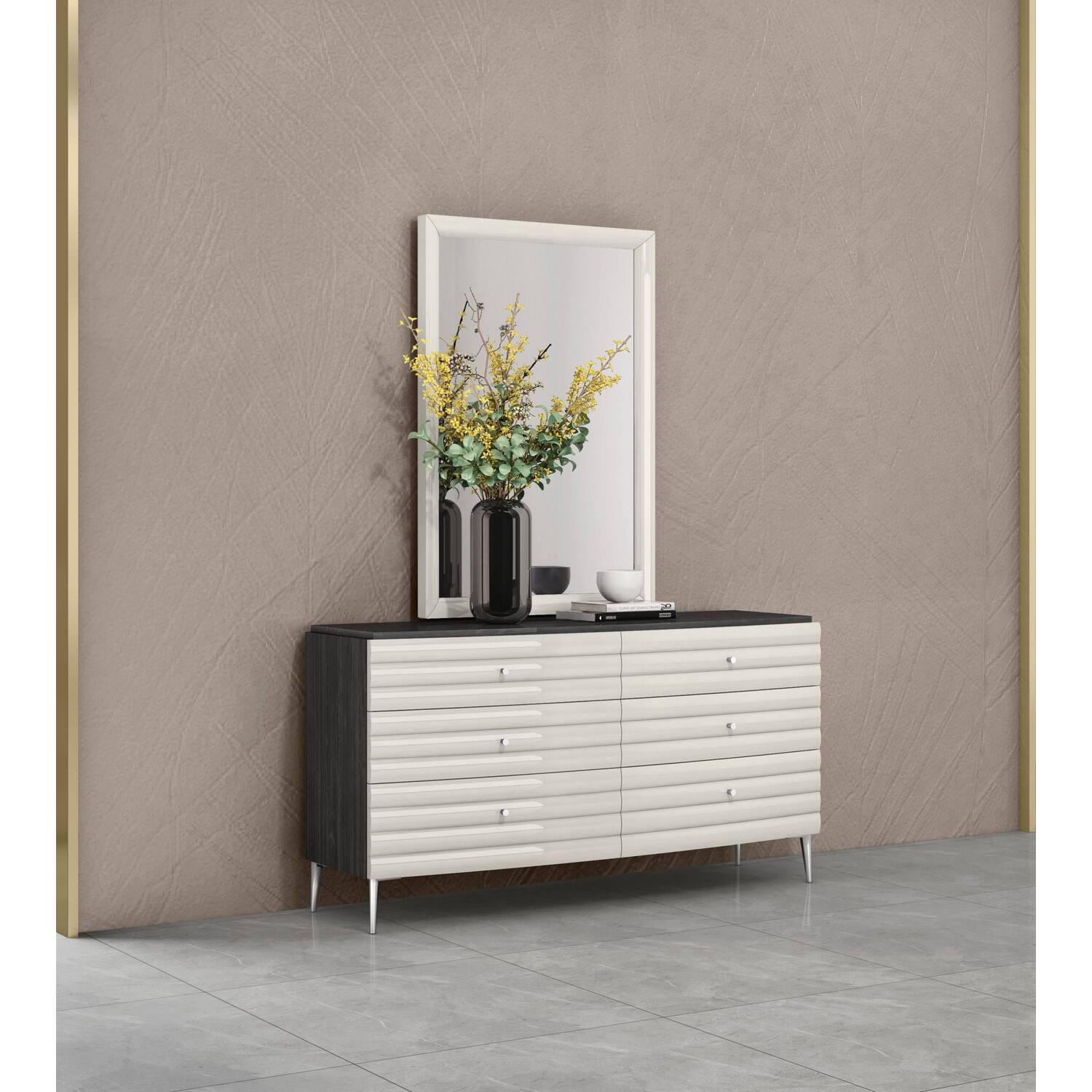 WhiteLine Pino Double Dresser, High Gloss Dark Grey Lacquer ILP-8273-4HG, 6 Self-Closing Drawers in High Gloss Light Grey ILP-8890213HG Lacquer and Silver Stainless Steel Handles, Silver Stainless Steel Legs., 0696576754821, DR1752-DGRY/LGRY