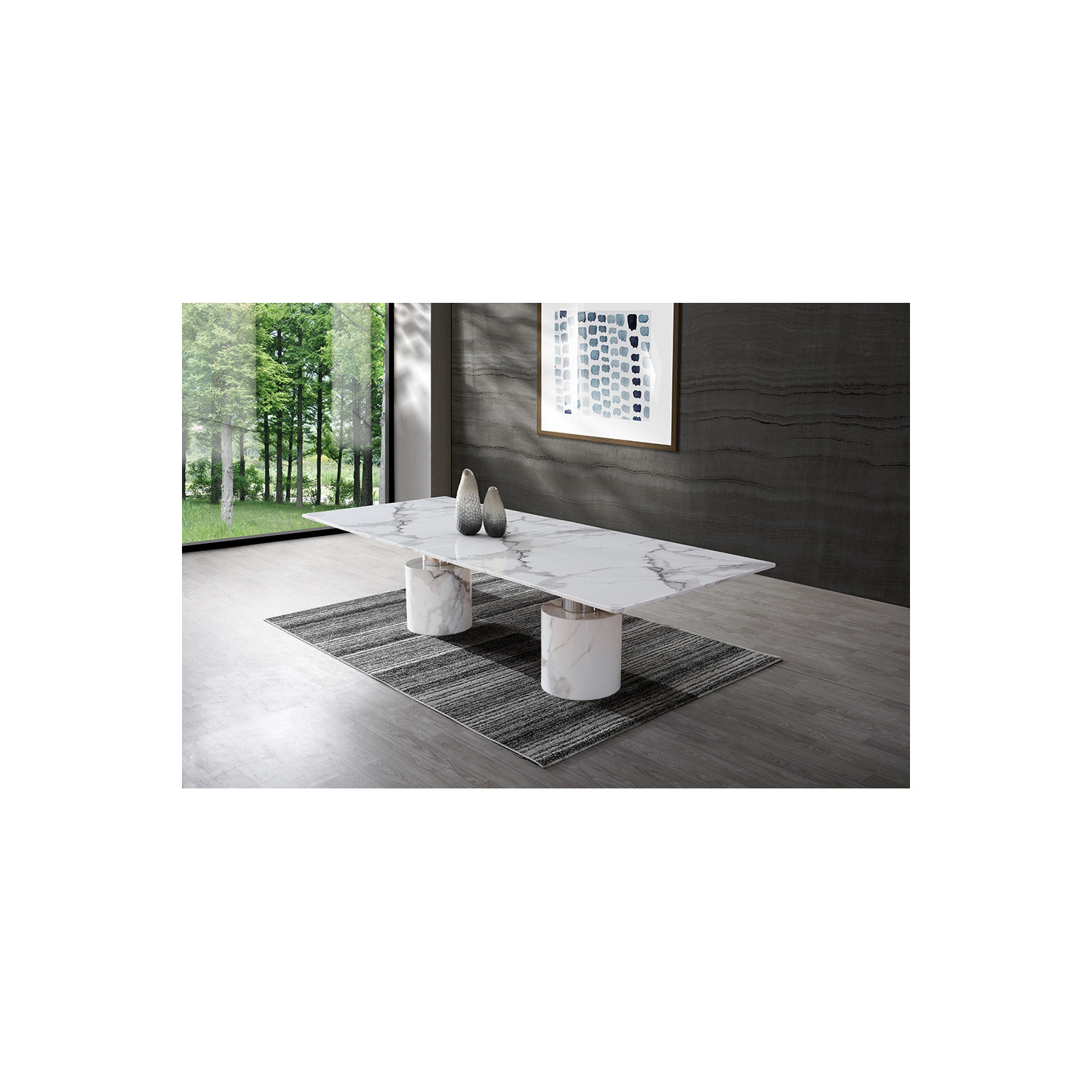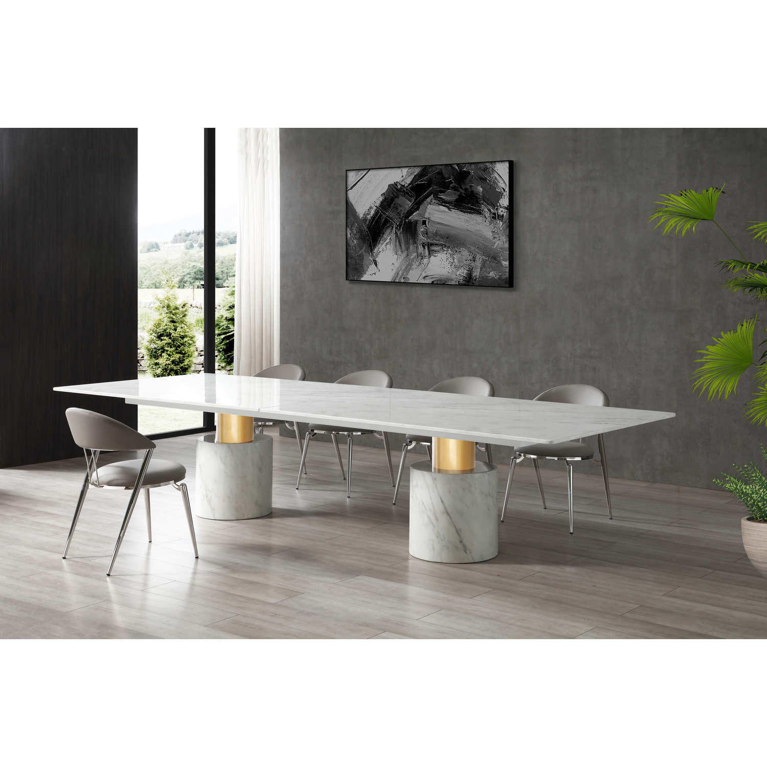 Geneva Dining Table, Marble white Glossy; Base:Polished Stainless Steel & Marble Glossy