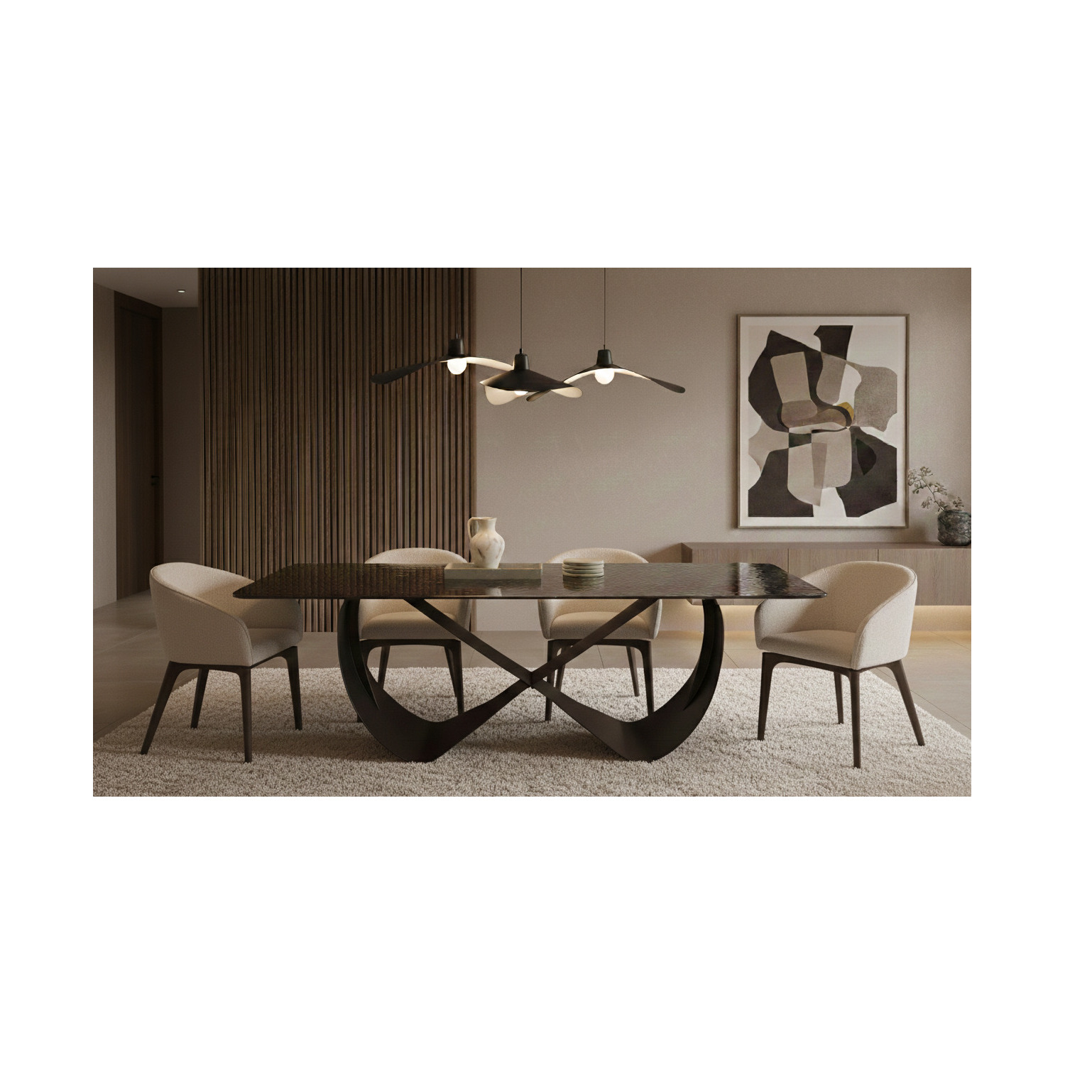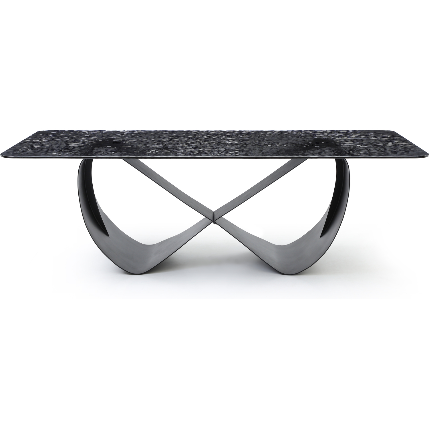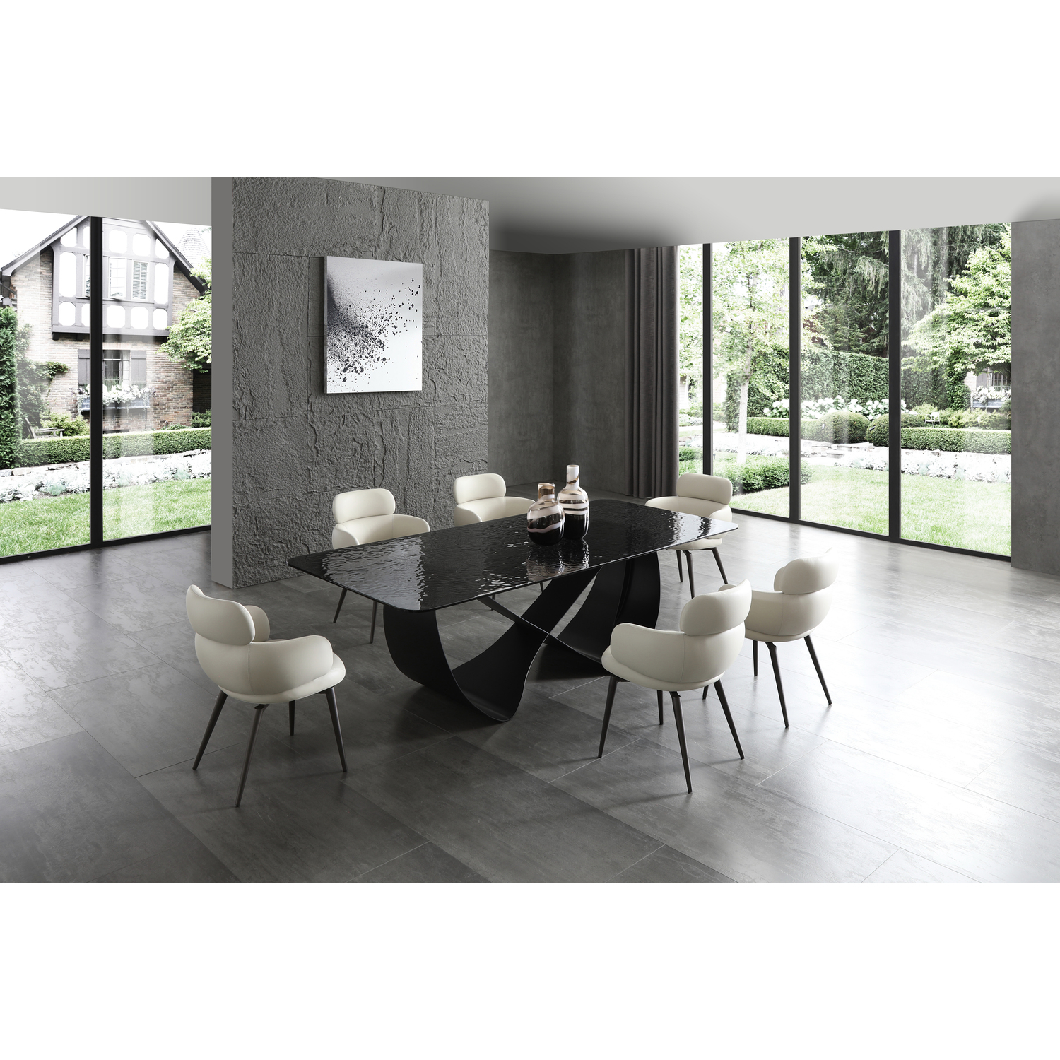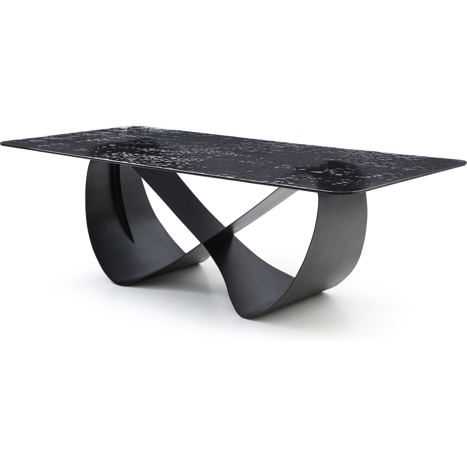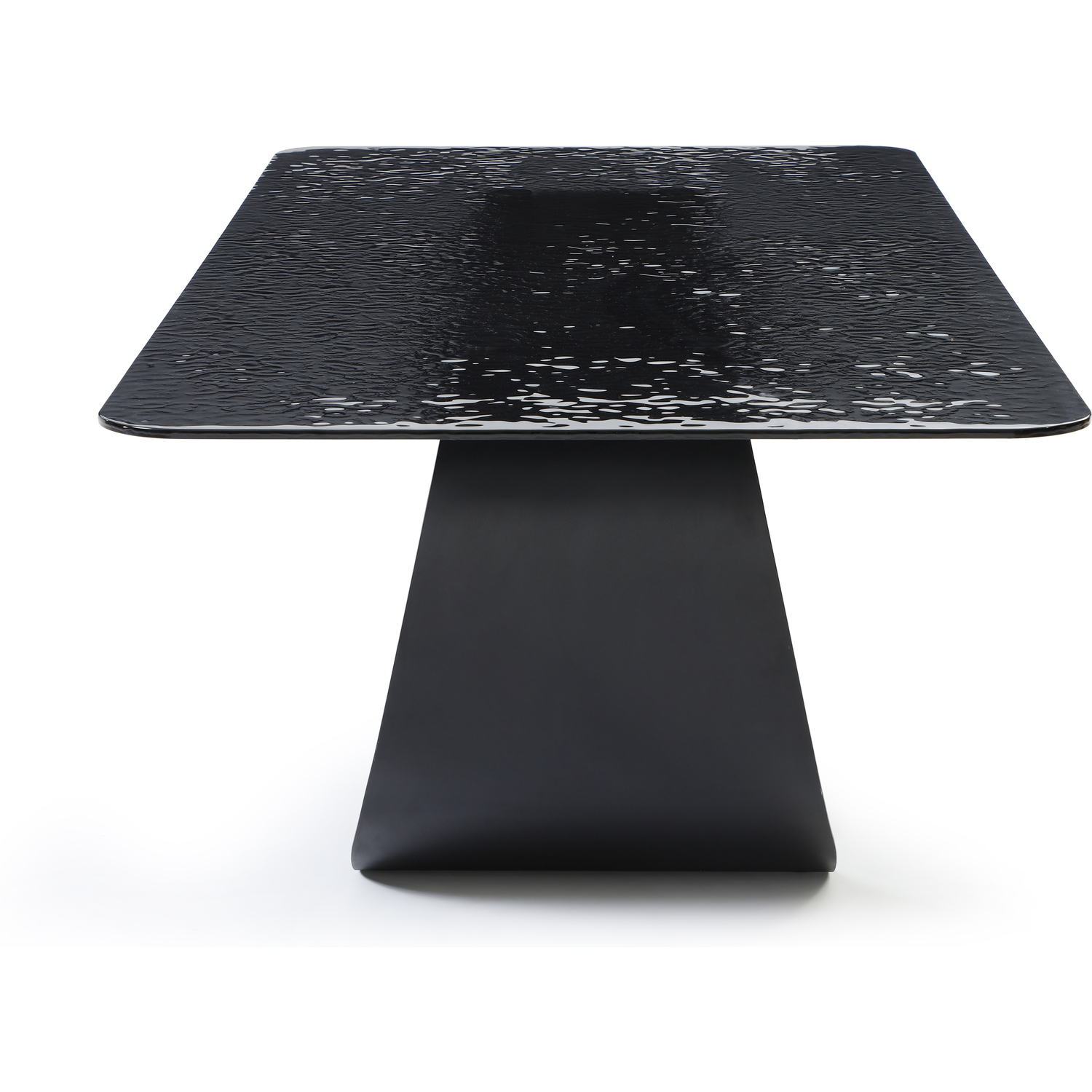 WhiteLine Tiffany Rectangular Dining Table, 12mm Melted Black Glass Top, Sanded black Powder Coated Metal Base., 0696576761799, DT1928-BLK