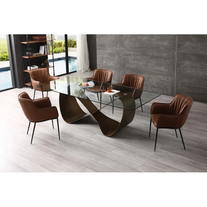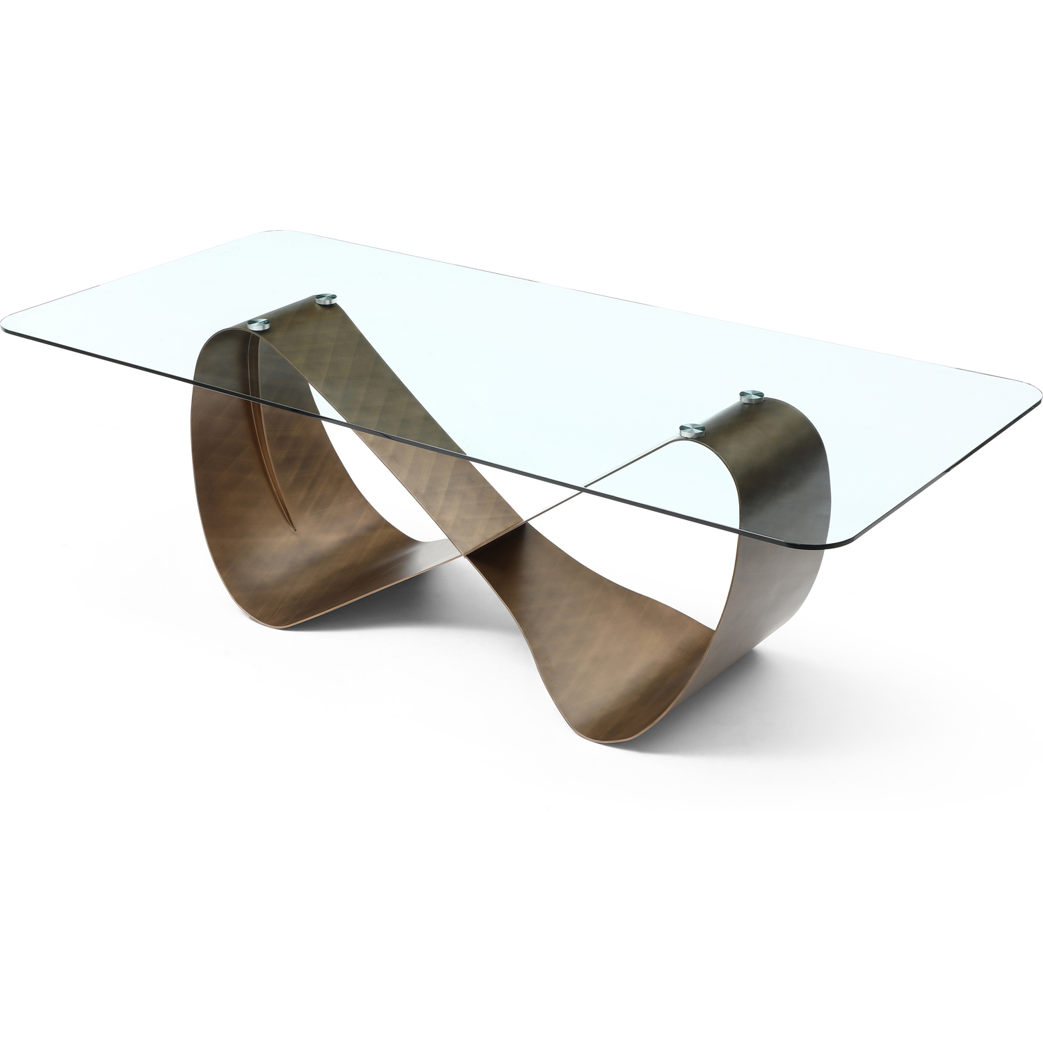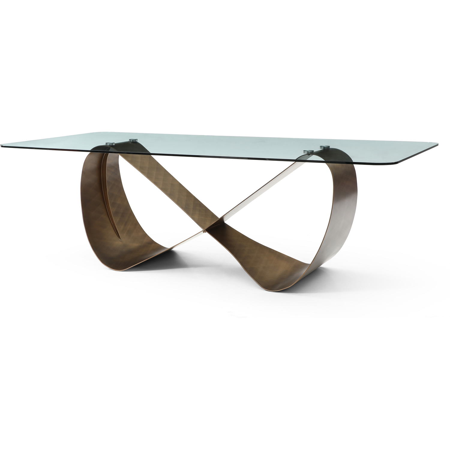 WhiteLine Tiffany Rectangular Dining Table, 12mm Tempered Glass Top, Brushed Bronze with Grid Lines Base., 0696576756764, DT1928-BRZ