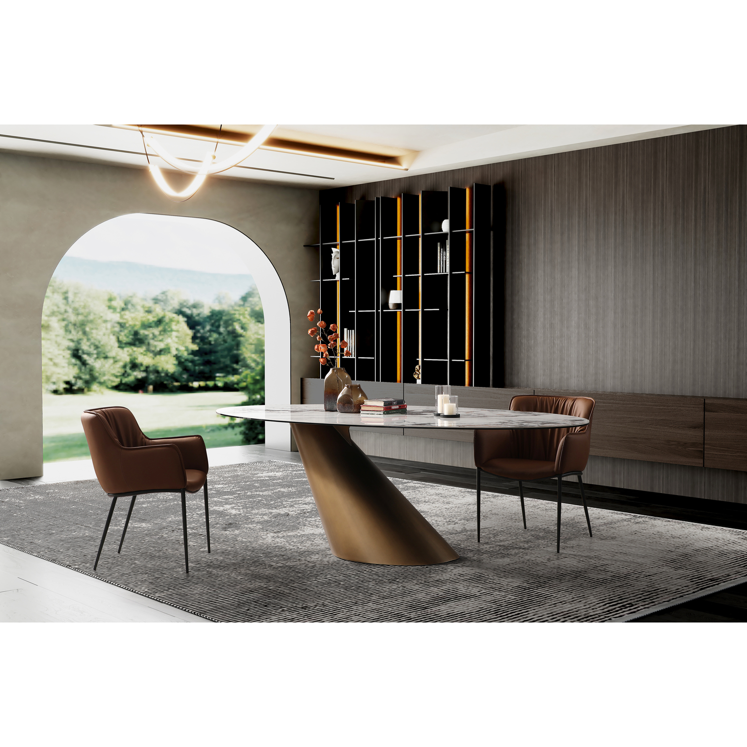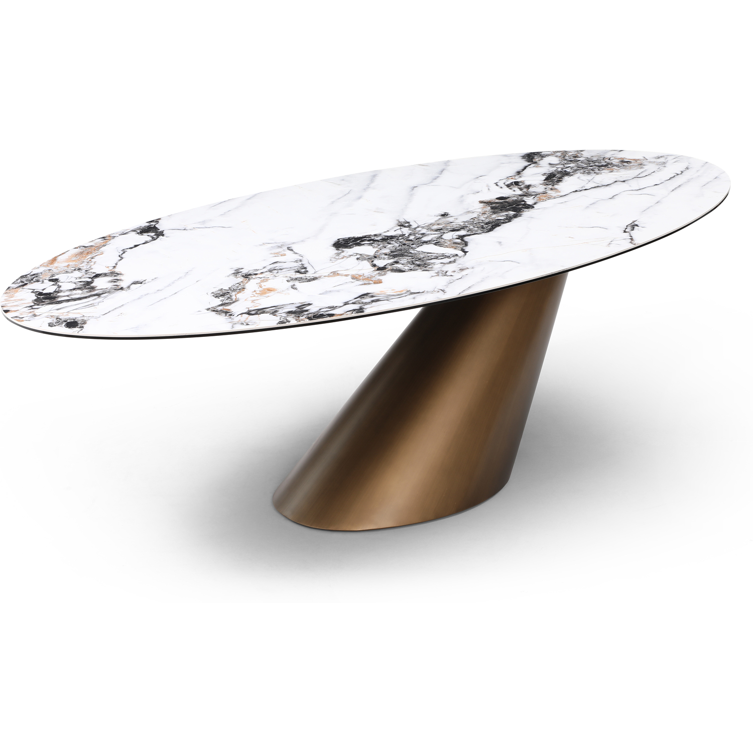 WhiteLine Alondra Oval Dining Table, 8mm Glass and 6mm White, Gold and Grey Ceramic Top FER-24920,, 0696576756719, DT1931-BRZ