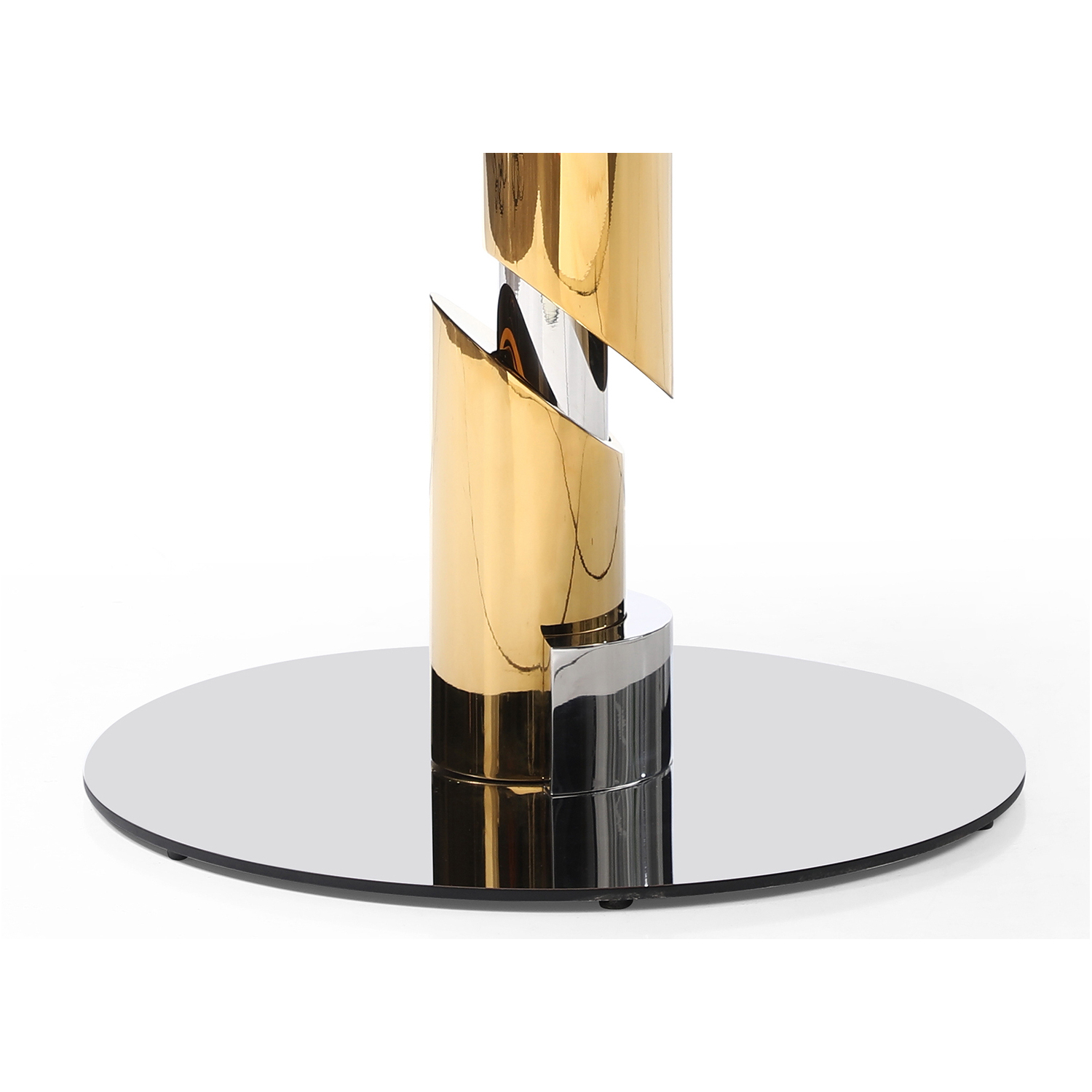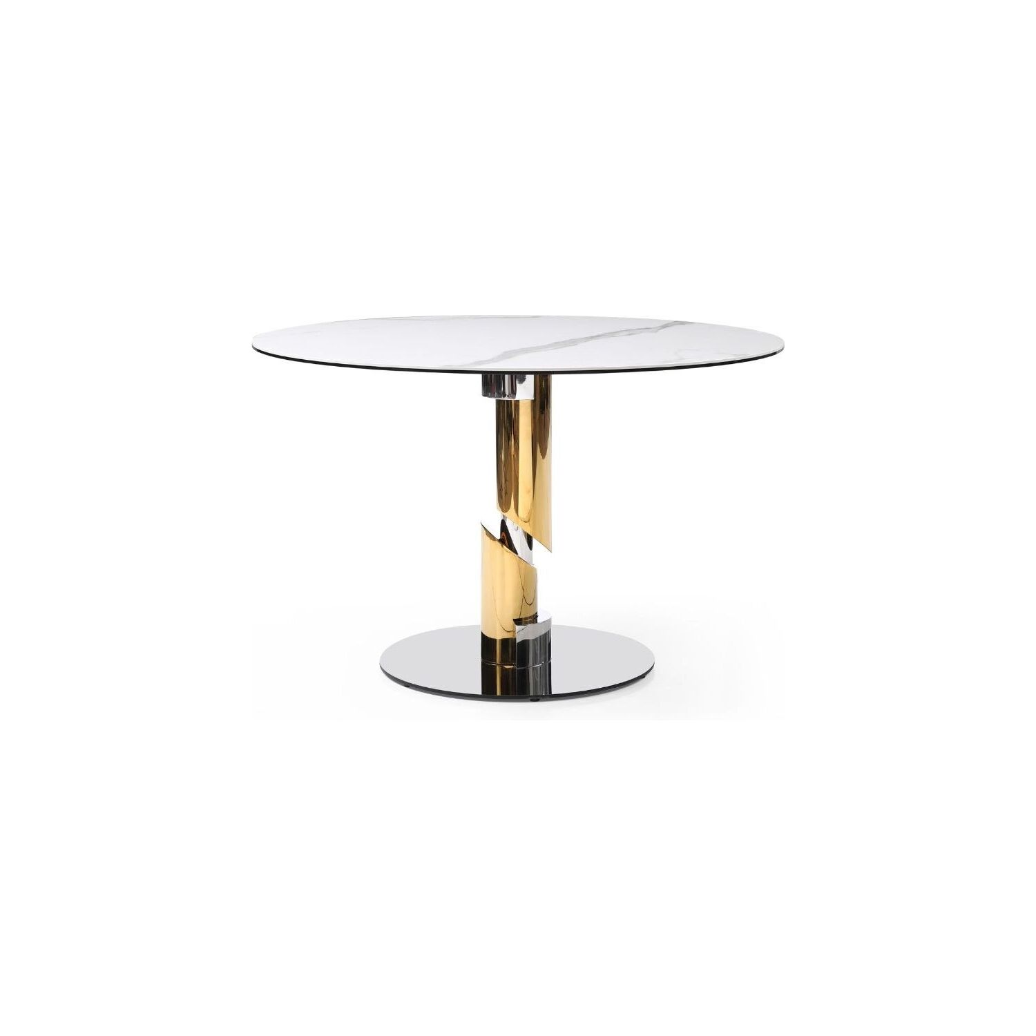 WhiteLine Gloria Round Dining Table, 8mm Glass and 6mm White Ceramic Top FER-5501, Polished Silver and Gold Stainless Steel Base., 0696576756788, DT1935-WHT