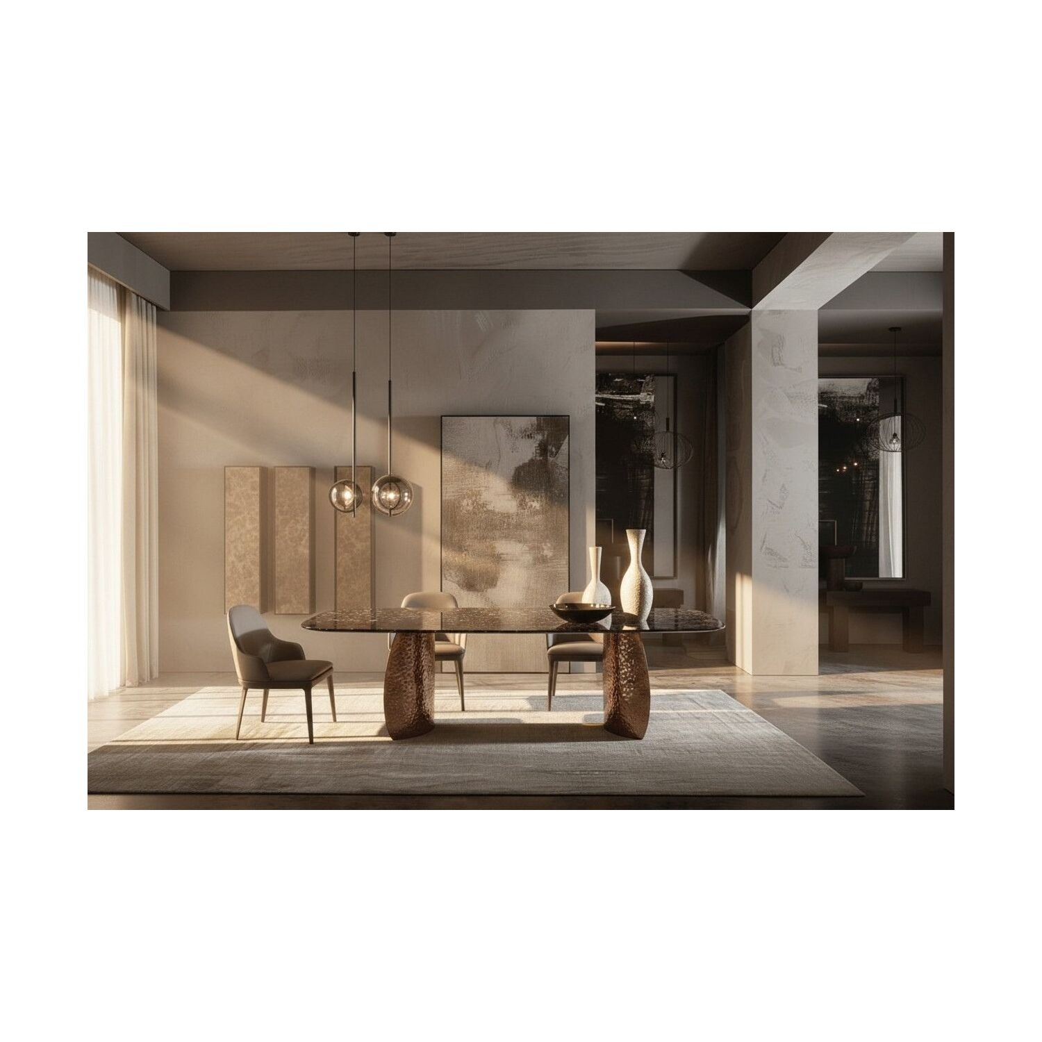 WhiteLine Rivelle Dining Table, Bronze Tempered Glass 10mm Top and Base., 0696576761232, DT2056GLS-BRZ