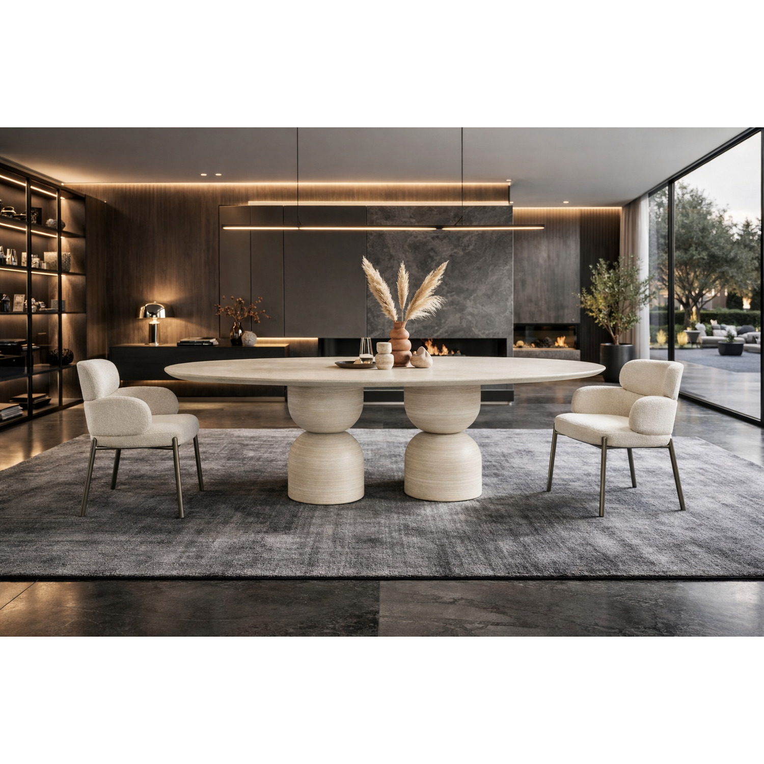 WhiteLine Rocca Dining Table, Beige Travertine Marble Top and base, Matte Finish SOC-4531-MRB-TRV, 0696576761416, DT2065O-TRV