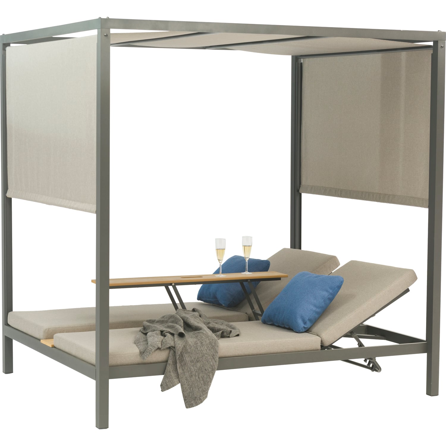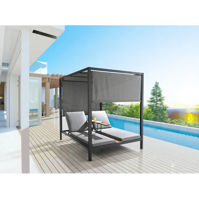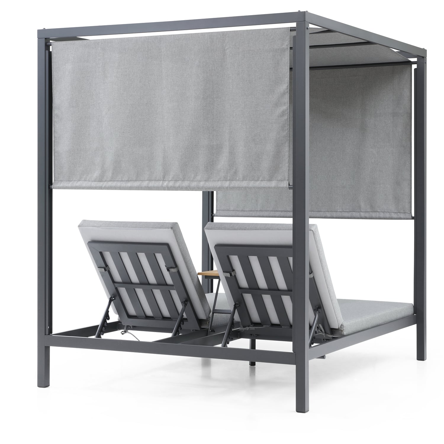 WhiteLine Alena Gazebo, Dark Grey Aluminum Structure AUG-PT9970 with Middle Polywood Table AUG-A30178-D02 (#5811C), Seat and Adjustable Back in Grey Fabric AUG-BX4003., 0696576755279, GAZ1838-GRY