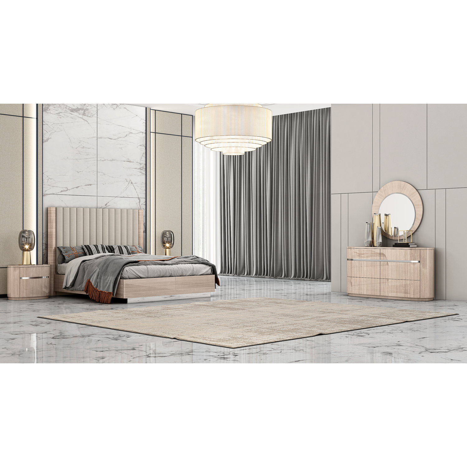 WhiteLine Waves Round Mirror, High Gloss Beige Frame Lacquer ILP-8273-2HG, 0696576754906, MR1753-BEI