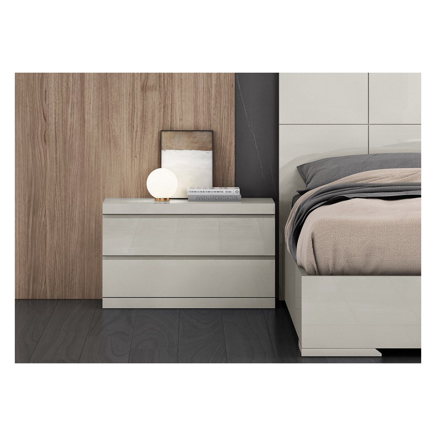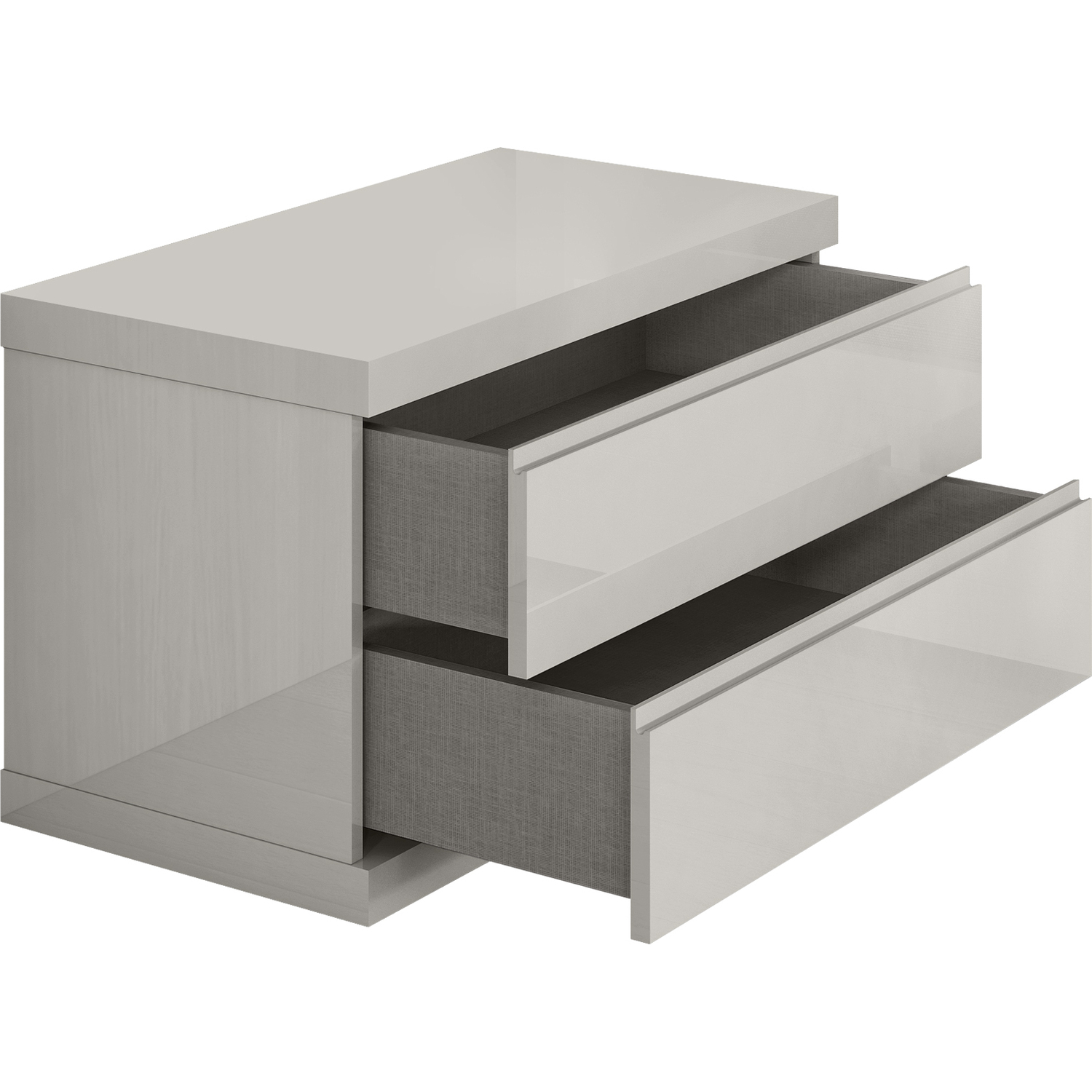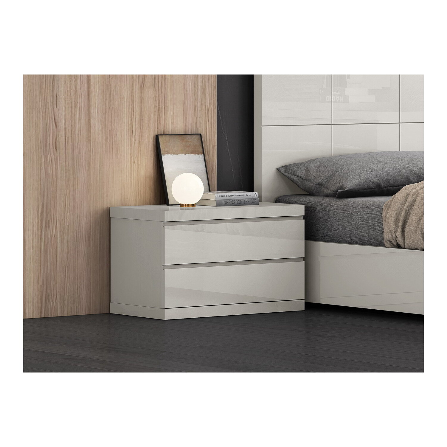 WhiteLine Anna Large Nightstand, High Gloss Light Grey Lacquer ILP-8890213HG, 2 Self-Closing Drawers., 0696576756511, NS1207L-LGRY
