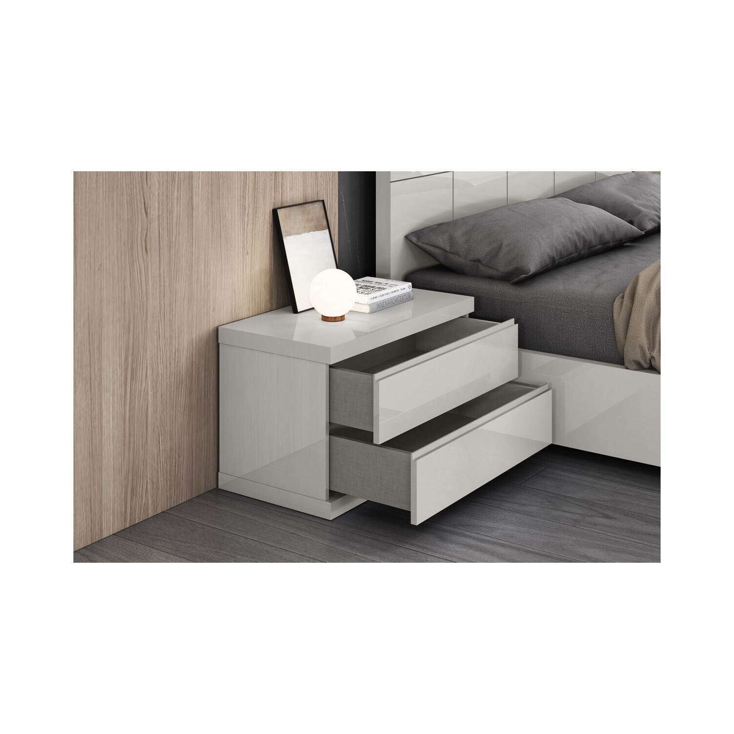 WhiteLine Anna Small Nightstand, High Gloss Light Grey Lacquer ILP-8890213HG, 2 Self-Closing Drawers., 0696576756528, NS1207S-LGRY