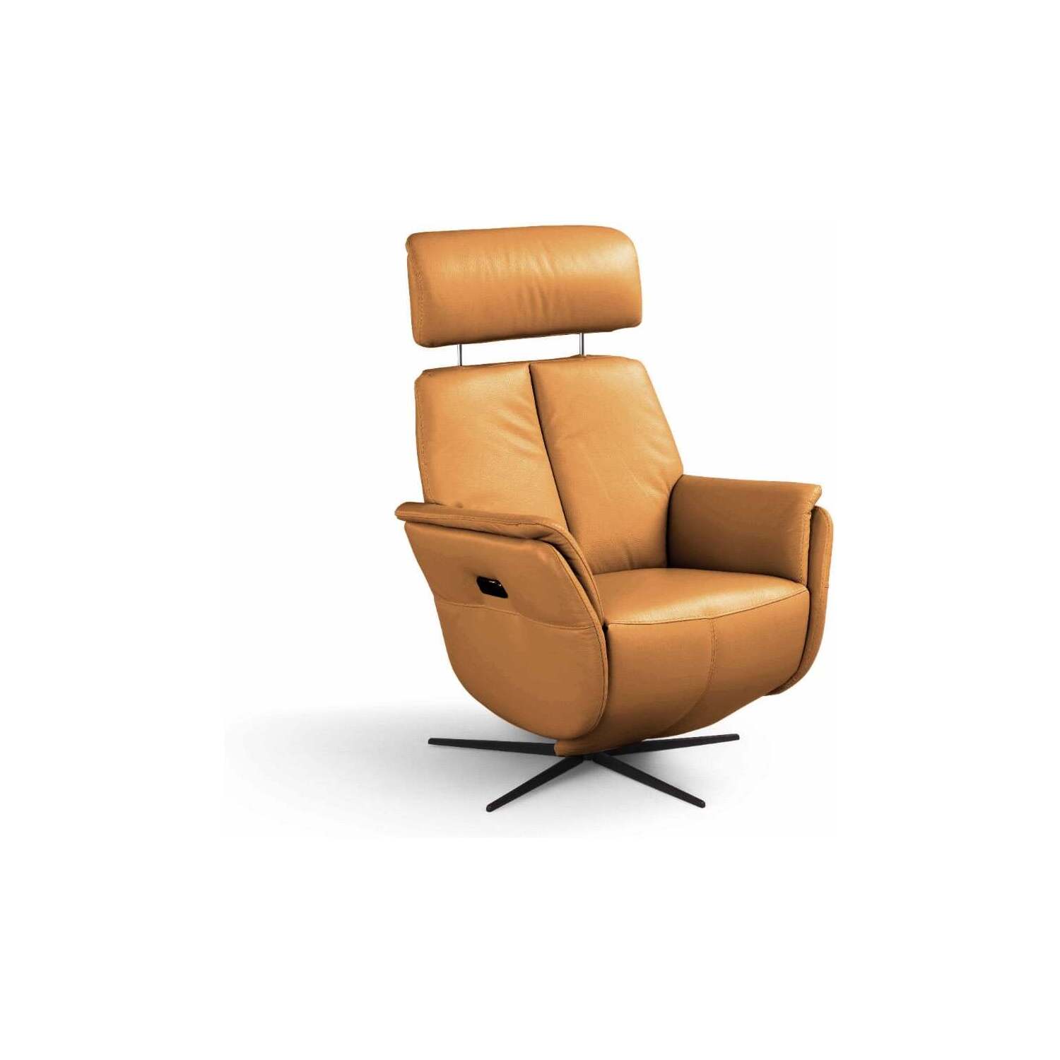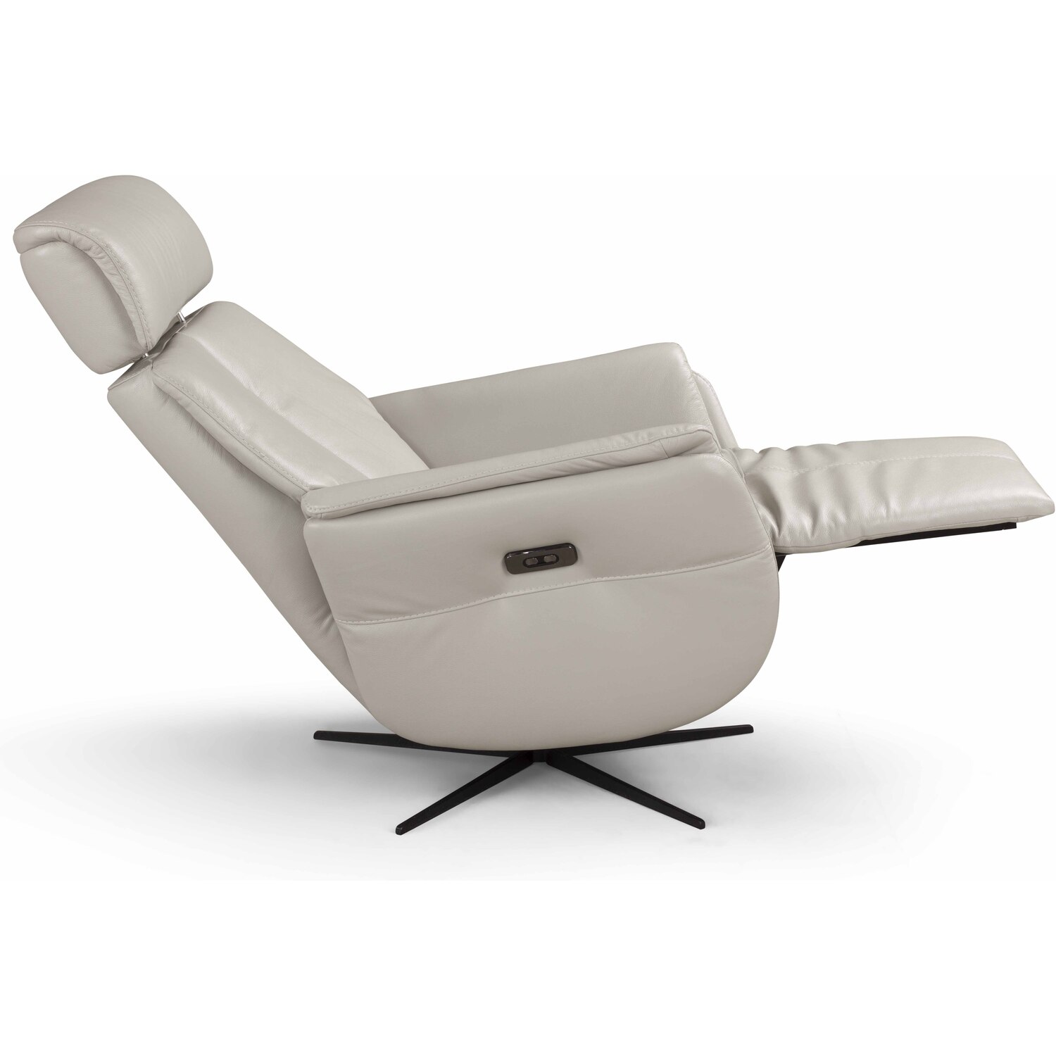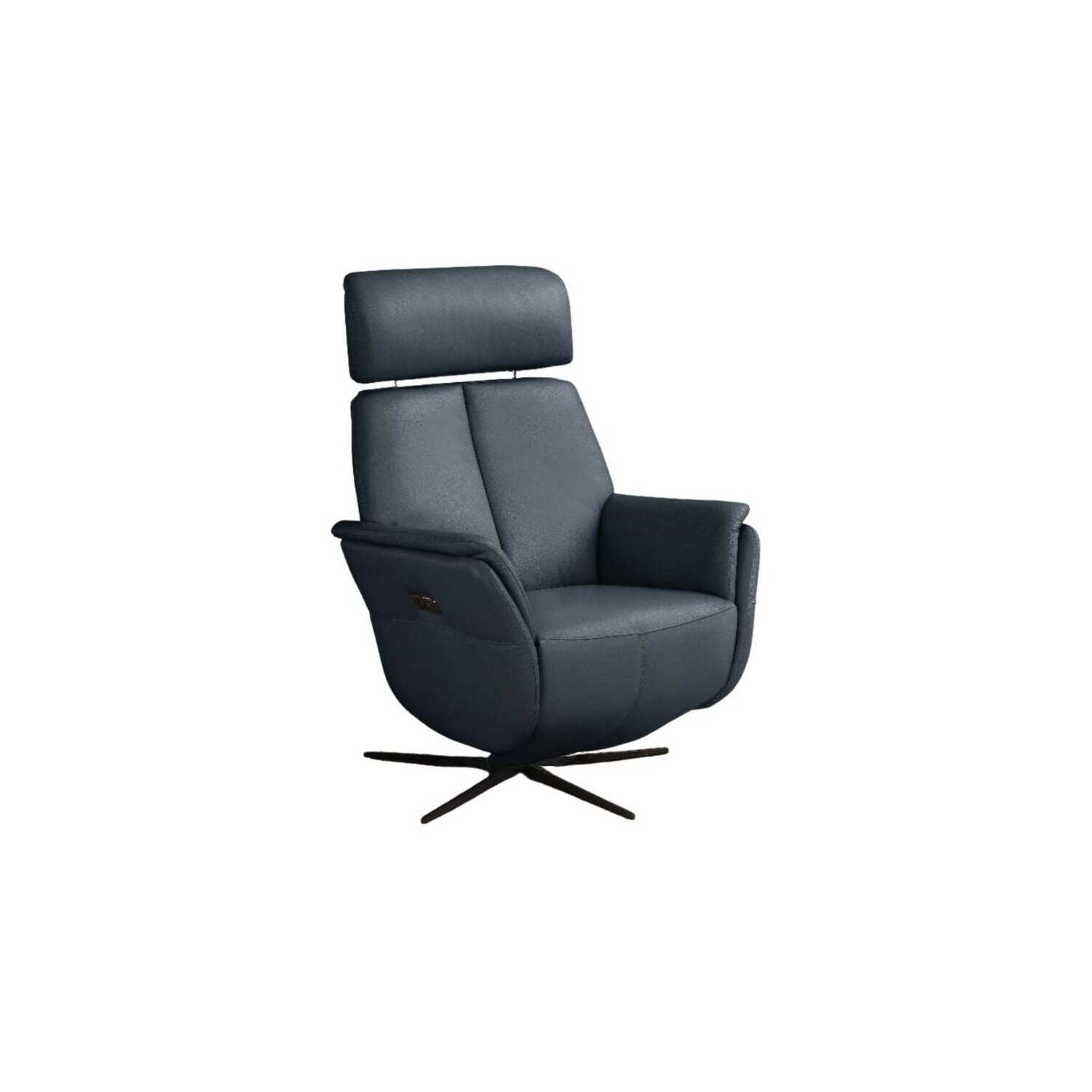 WhiteLine Beverly Swivel Recliner, Upholstered in Blue Genuine Leather BMA-B622, With an Electric Reclining Function at the Touch of a Button, and Black Metal Legs., 0696576761171, RL2054L-BLU