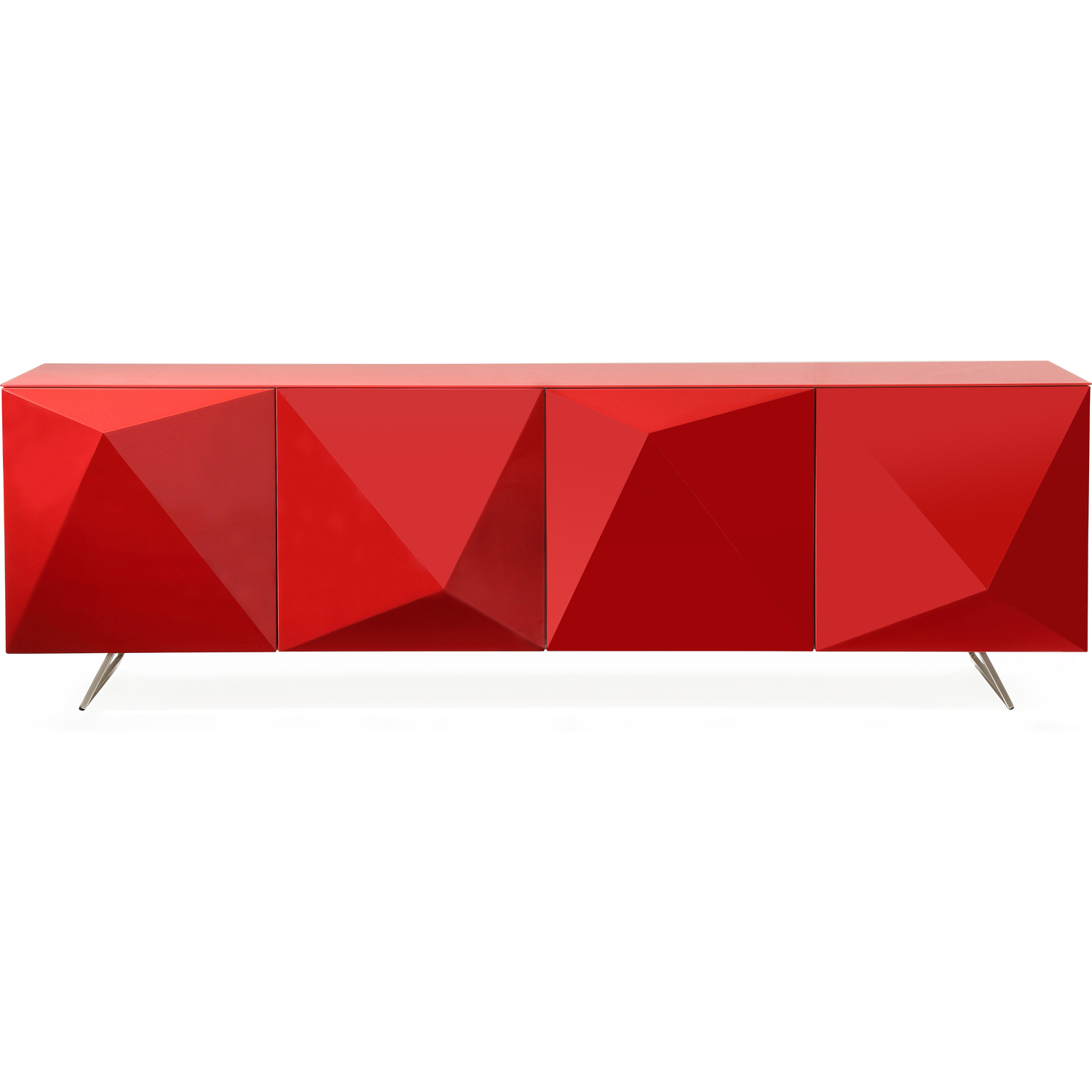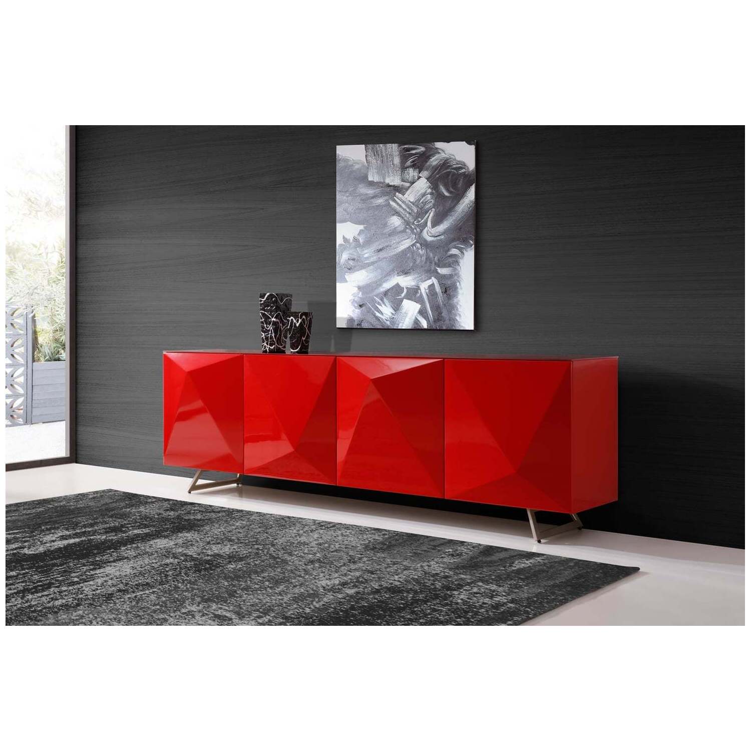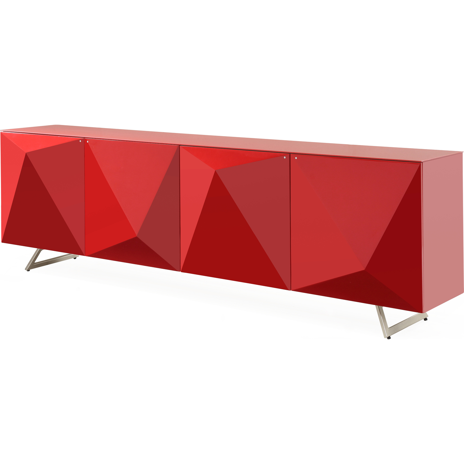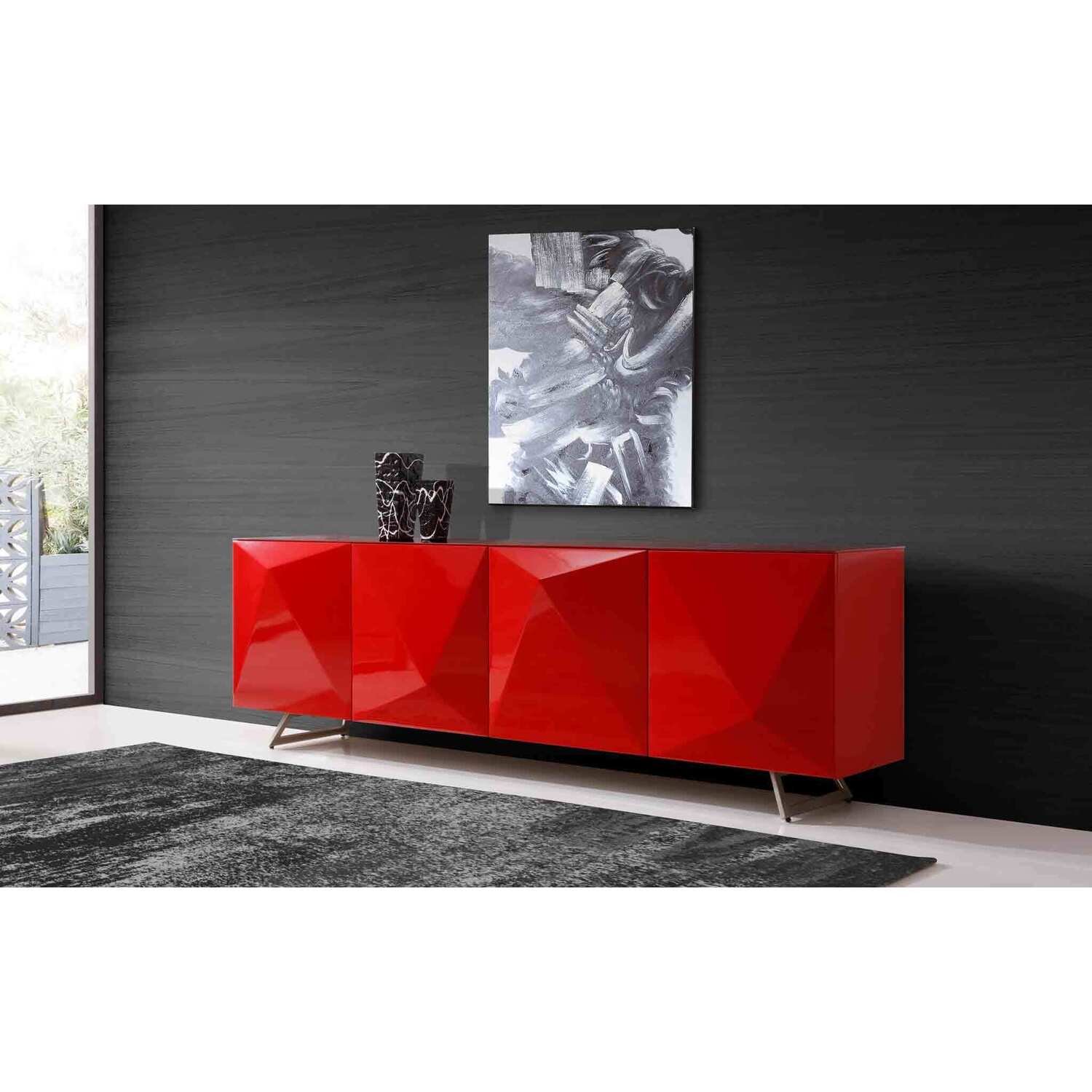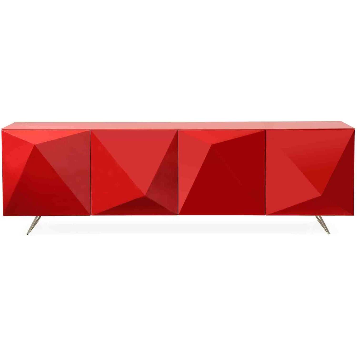 Samantha Buffet High Gloss Red, design on doors and metal legs with brushed nickel finish