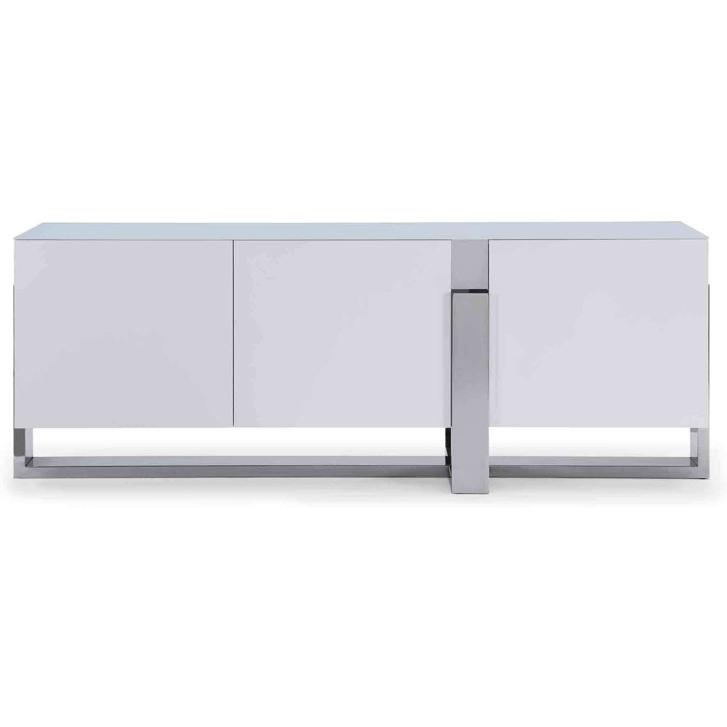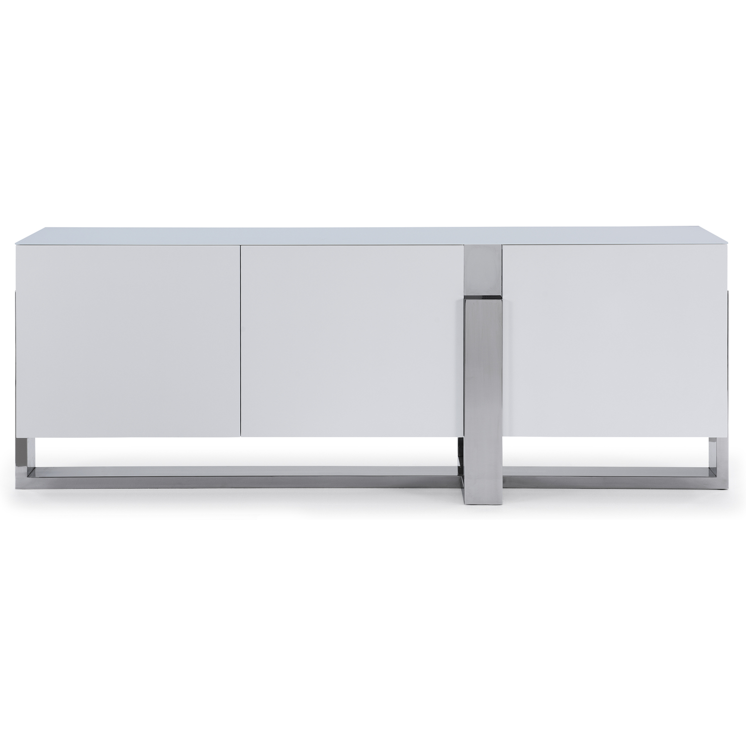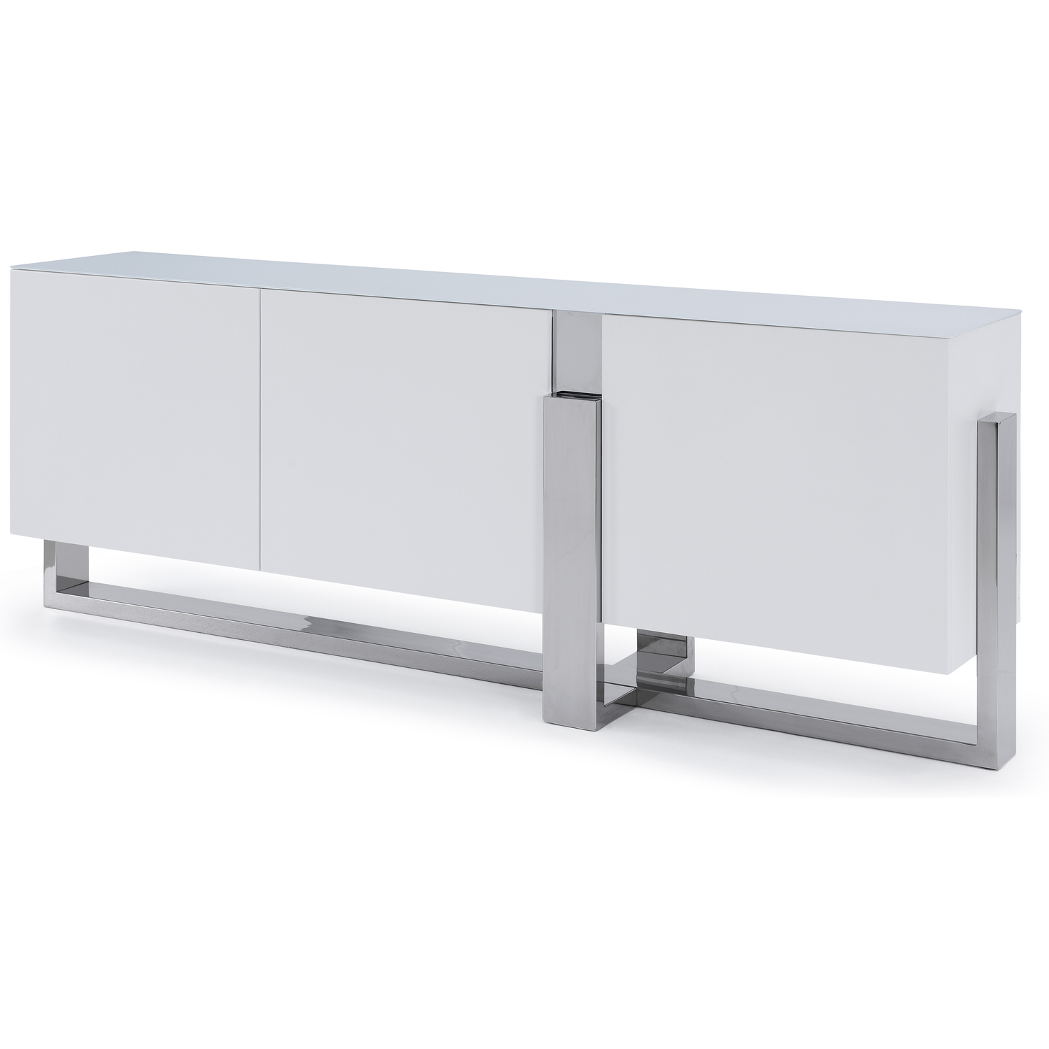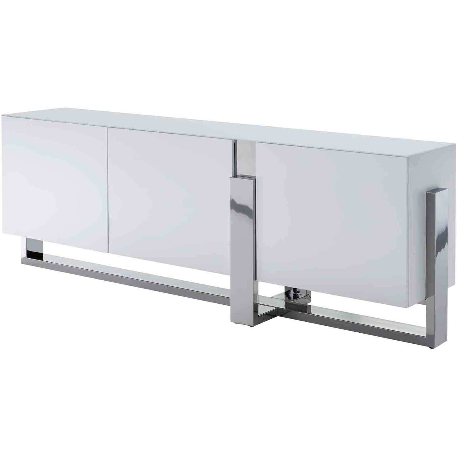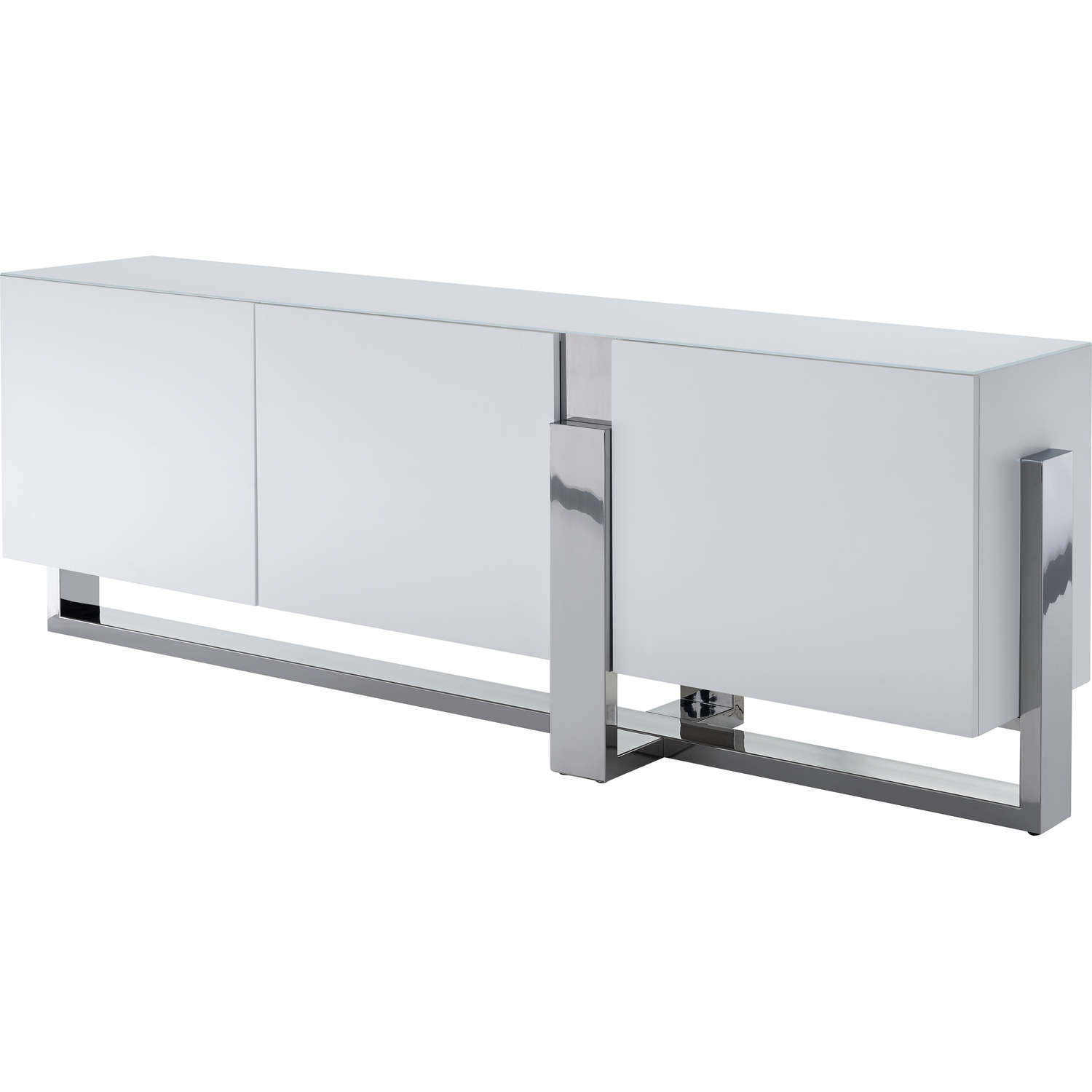 Whiteline Imports Blake Buffet 5mm Tempered Crystal Frosted Glass Top, Matte White, Polished Stainless Steel Base. SB1439-WHT