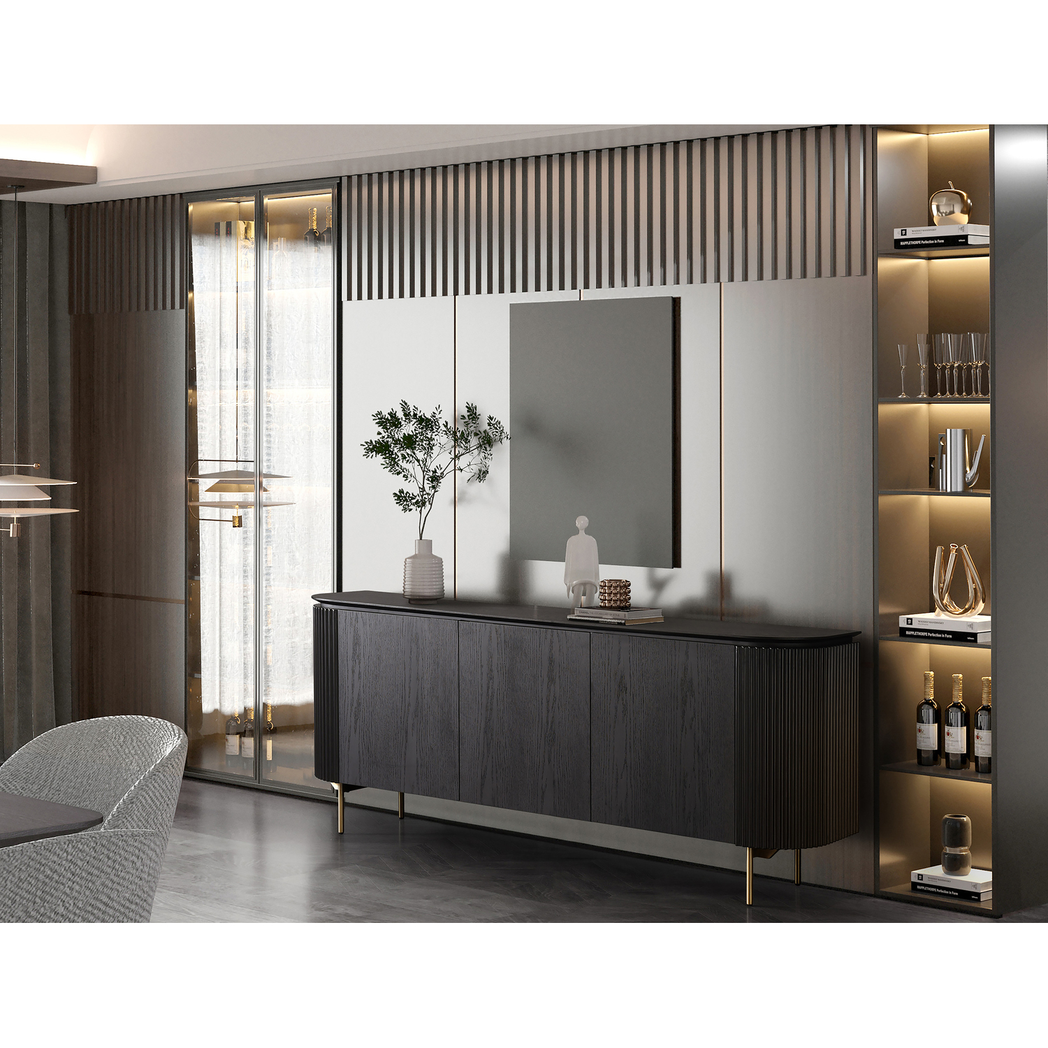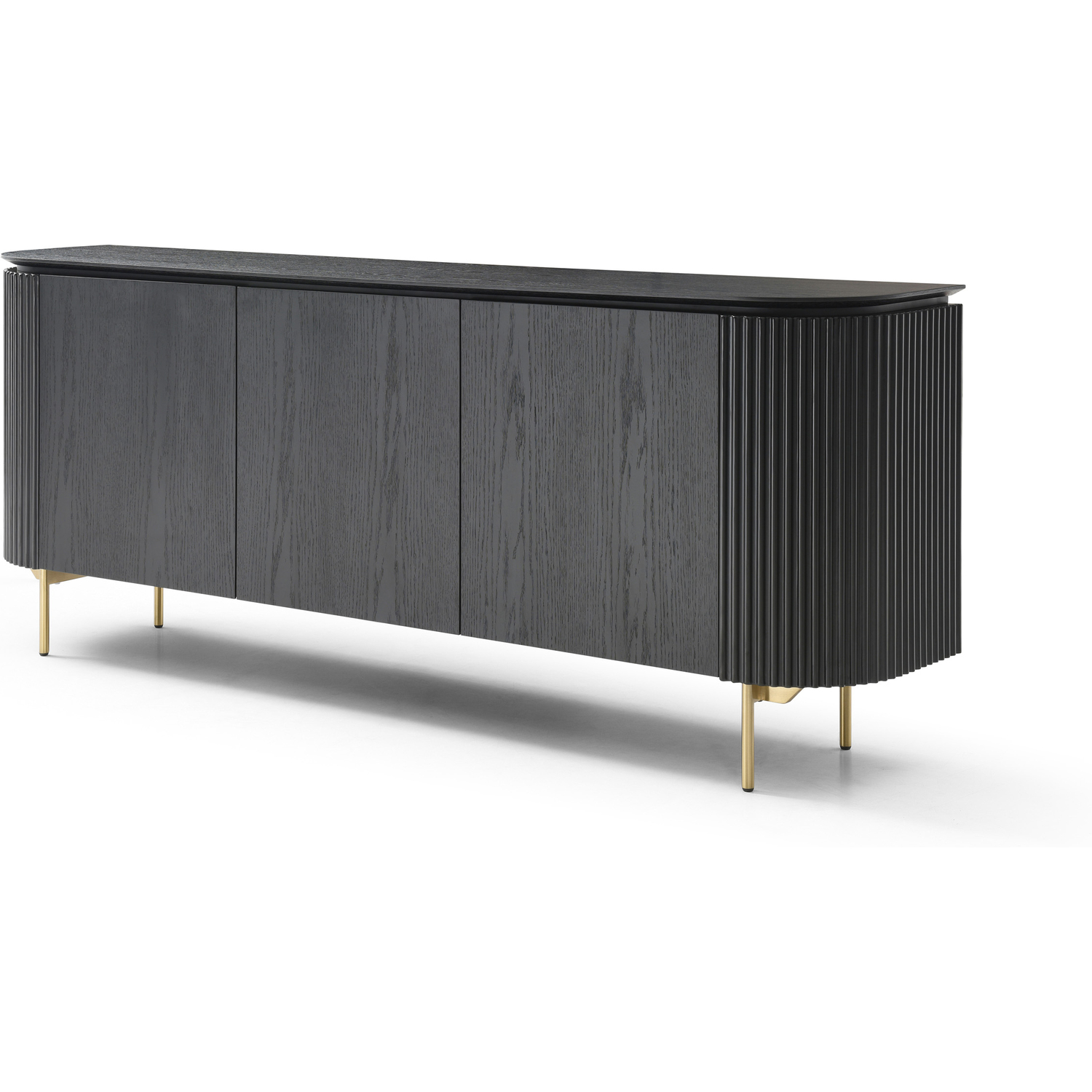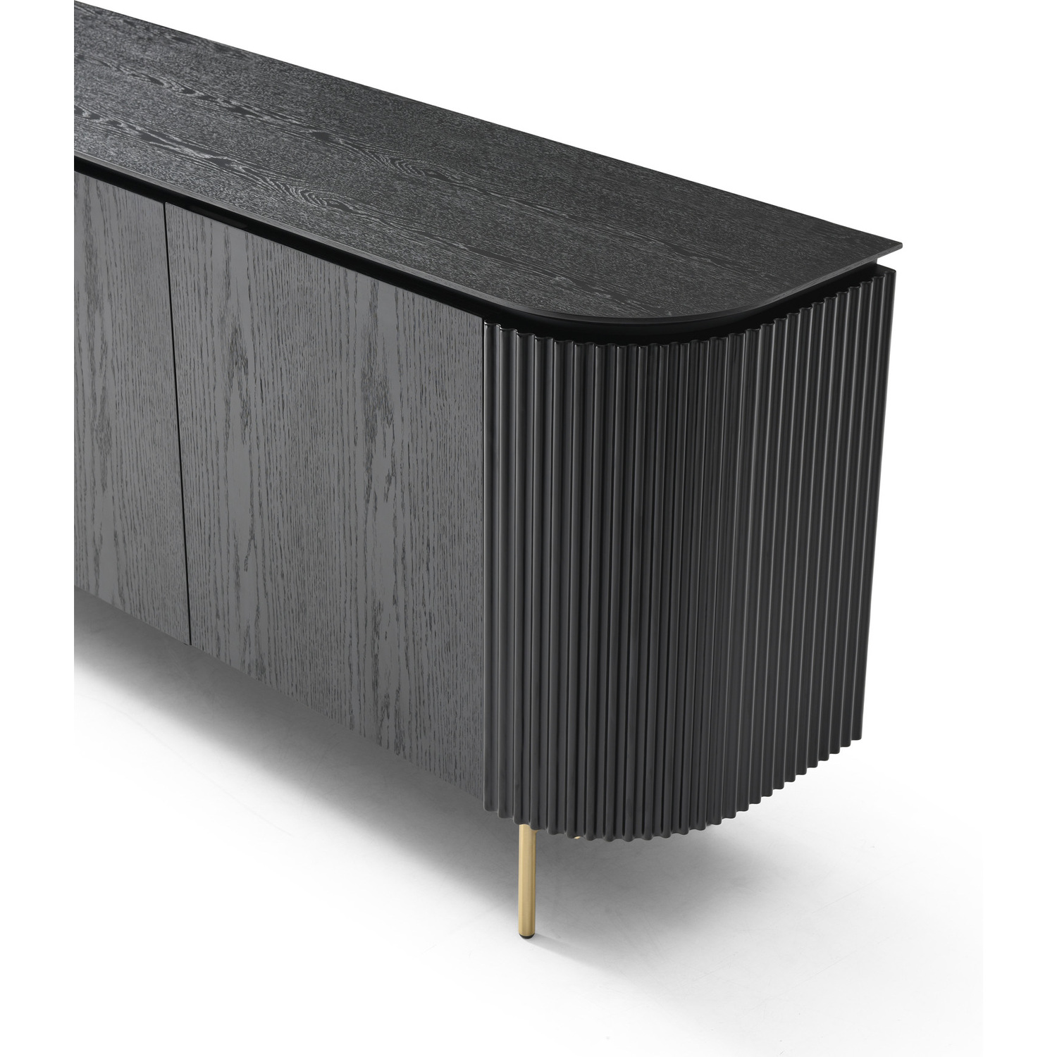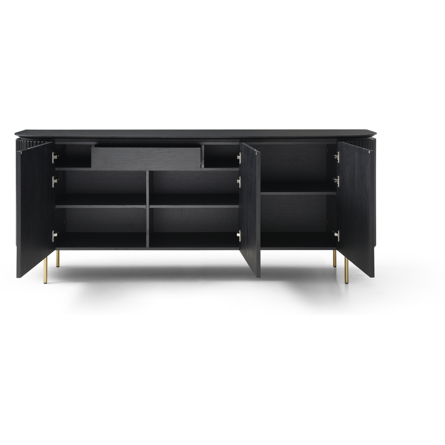 WhiteLine Heidi Buffet, Black Oak Veneer EPI-1608, with Ribbed Sides Design, Inner Drawer and Shelves, Handles and Legs in Brushed Brass EPI-I005, 0696576756061, SB1842-BLK