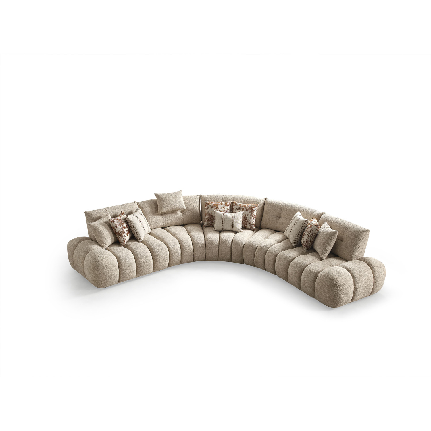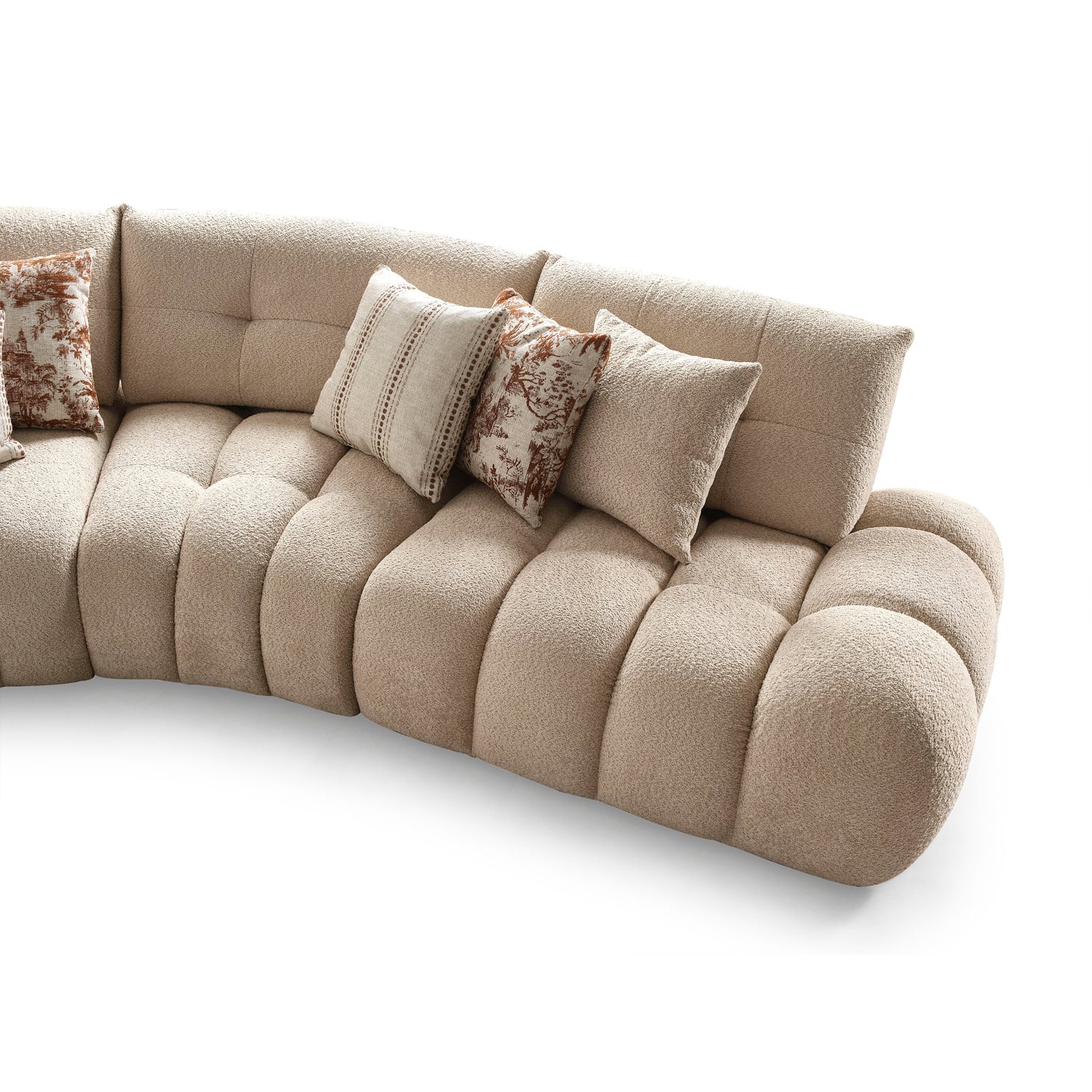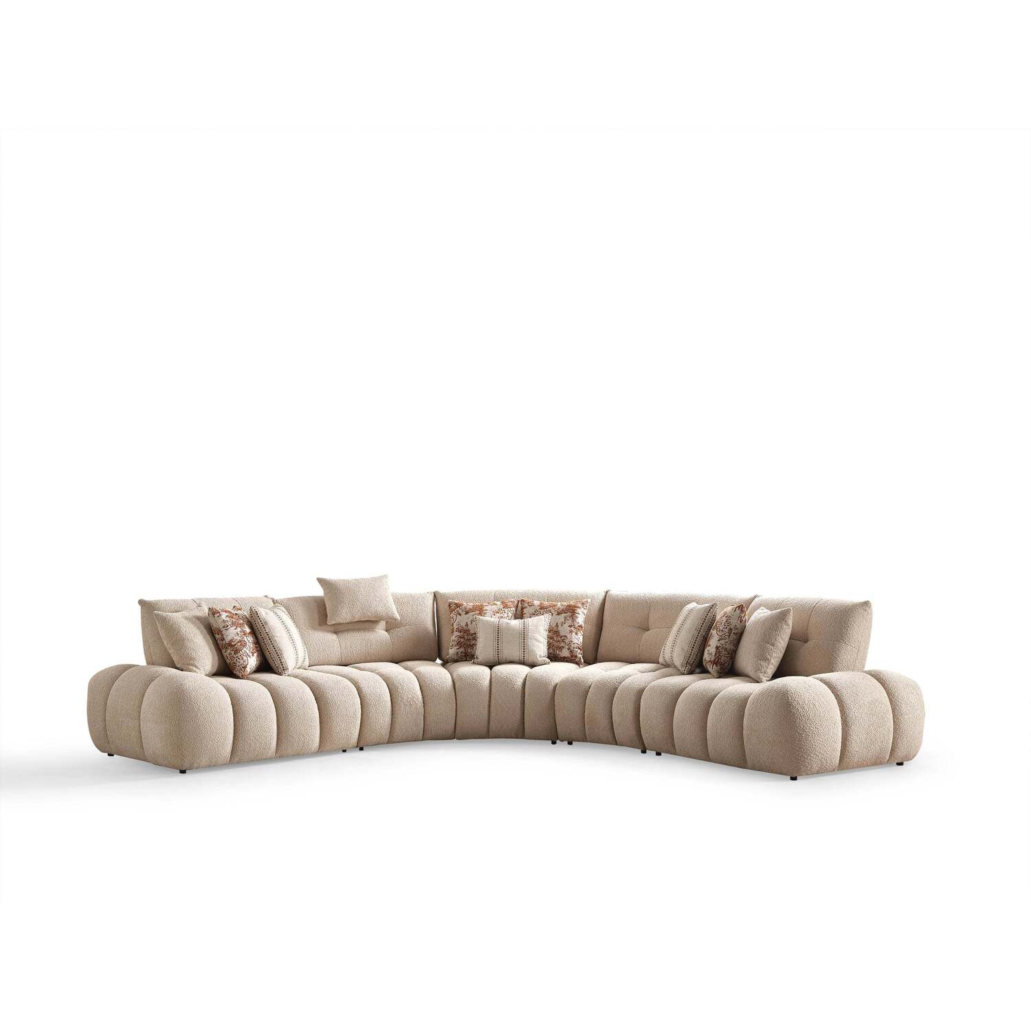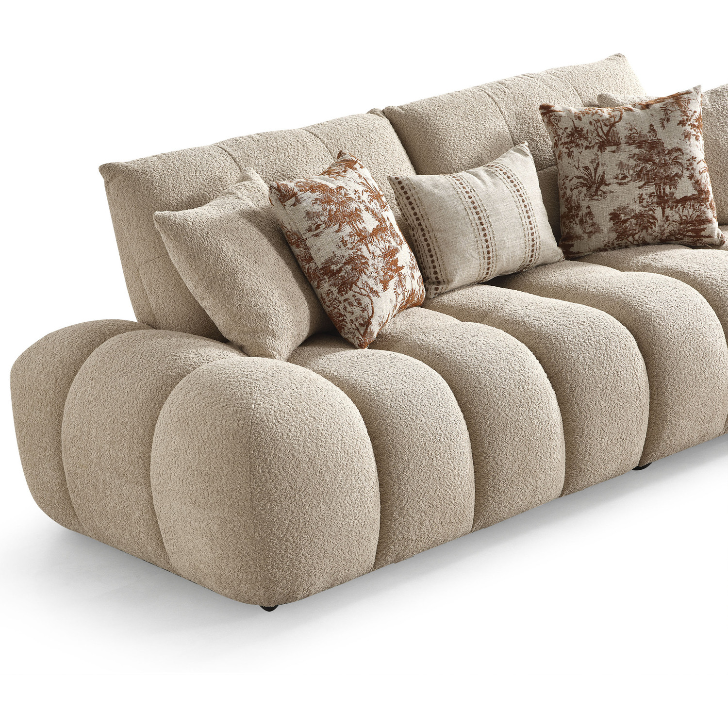 WhiteLine Lune Sectional, Left Side Module, Upholstered in high-quality Fire-Resistant Taupe Boucle Fabric AIC-PANDORA04, With Nine Square Cushions,Plush Seating is enhanced By 32-density., 0696576761058, SC2051F-TAU