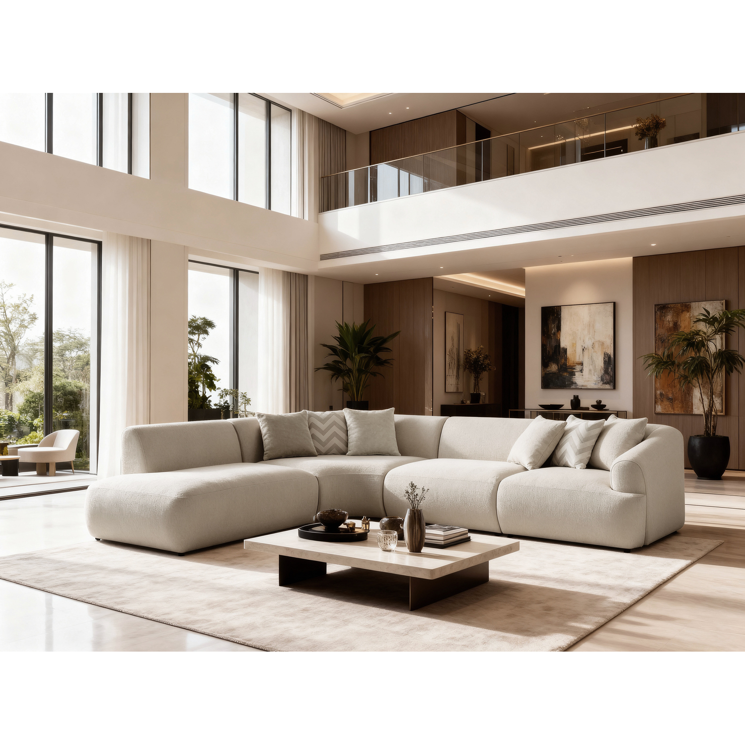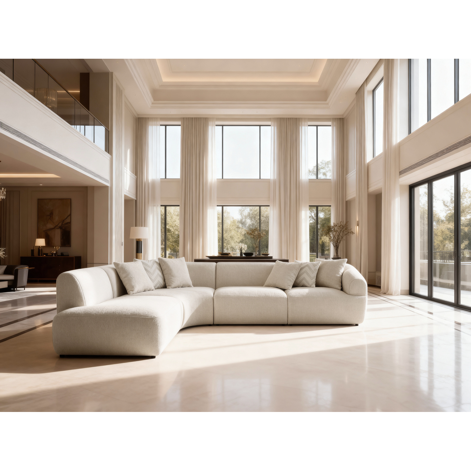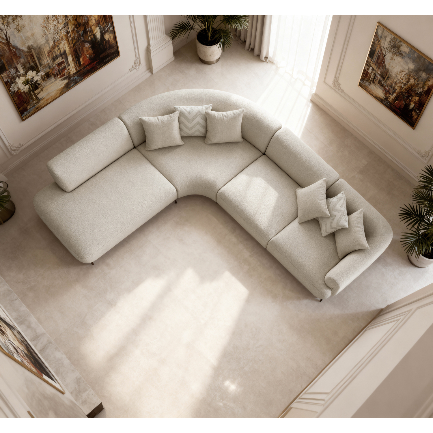 WhiteLine Larissa Sectional, Left Armless Chaise, Upholstered In White Linen Boucle Fabric AIC-OSCARRE1046., 0696576760990, SL2050F-WHT