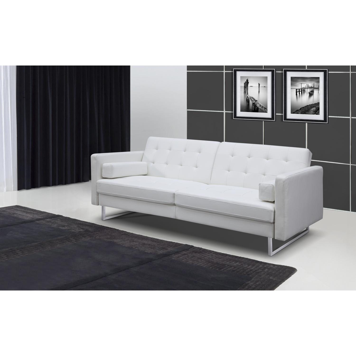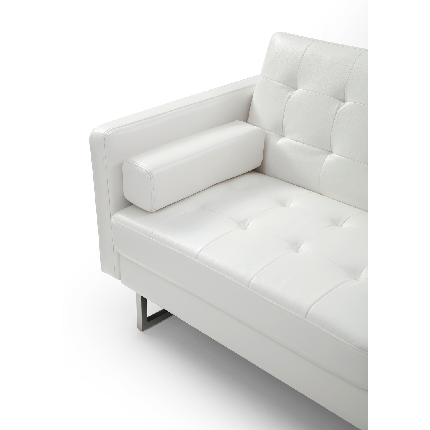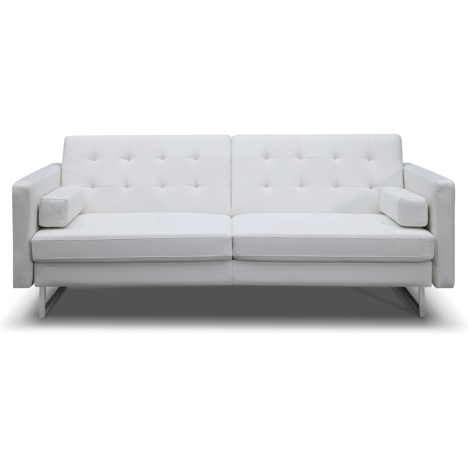 Giovanni Sofa Bed, White Faux Leather, Chrome legs.