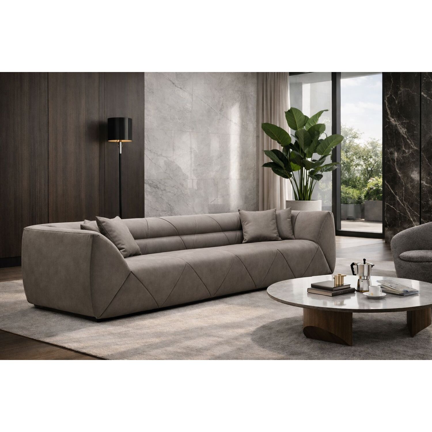 WhiteLine Quarry 4 Seater Sofa, Dark Grey Nubuck SSE-Buffalo 913(BFL913), Quilted Pattern, Black Legs., 0696576759932, SO1974L-DGRY