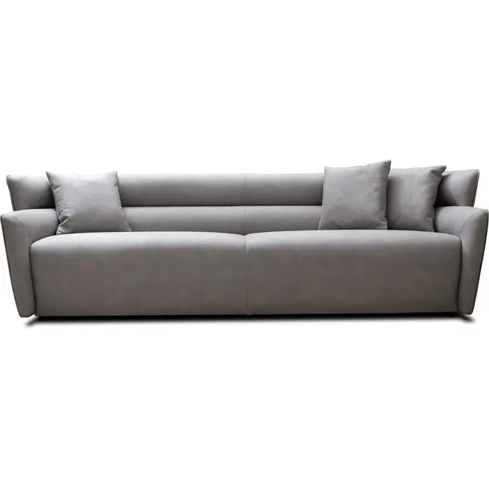WhiteLine Boss Sofa, Grey Nubuck Leather SSE-Massa 610(MSA610), with Horizontal Padded Design Back, Black Legs., 0696576759949, SO1979L-GRY