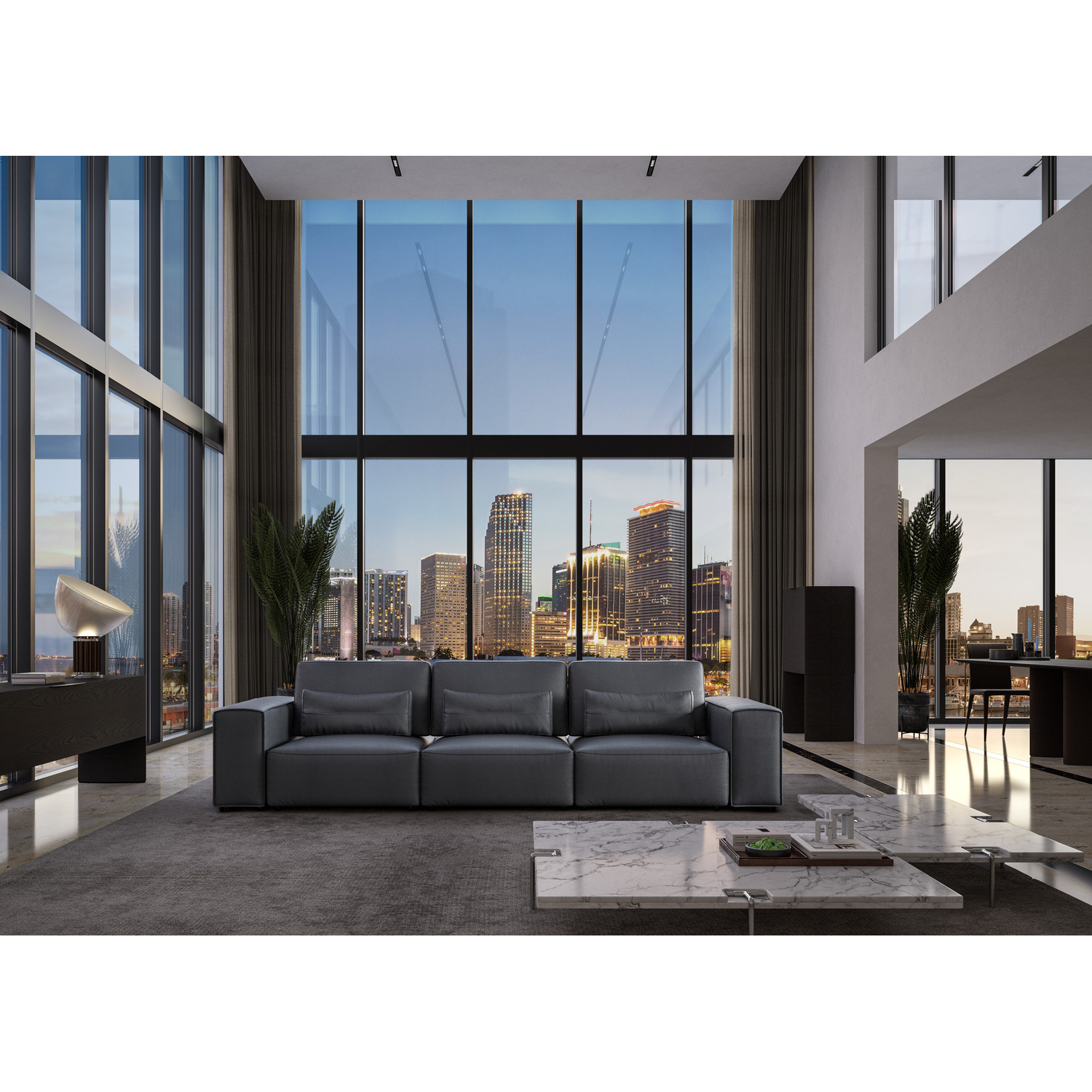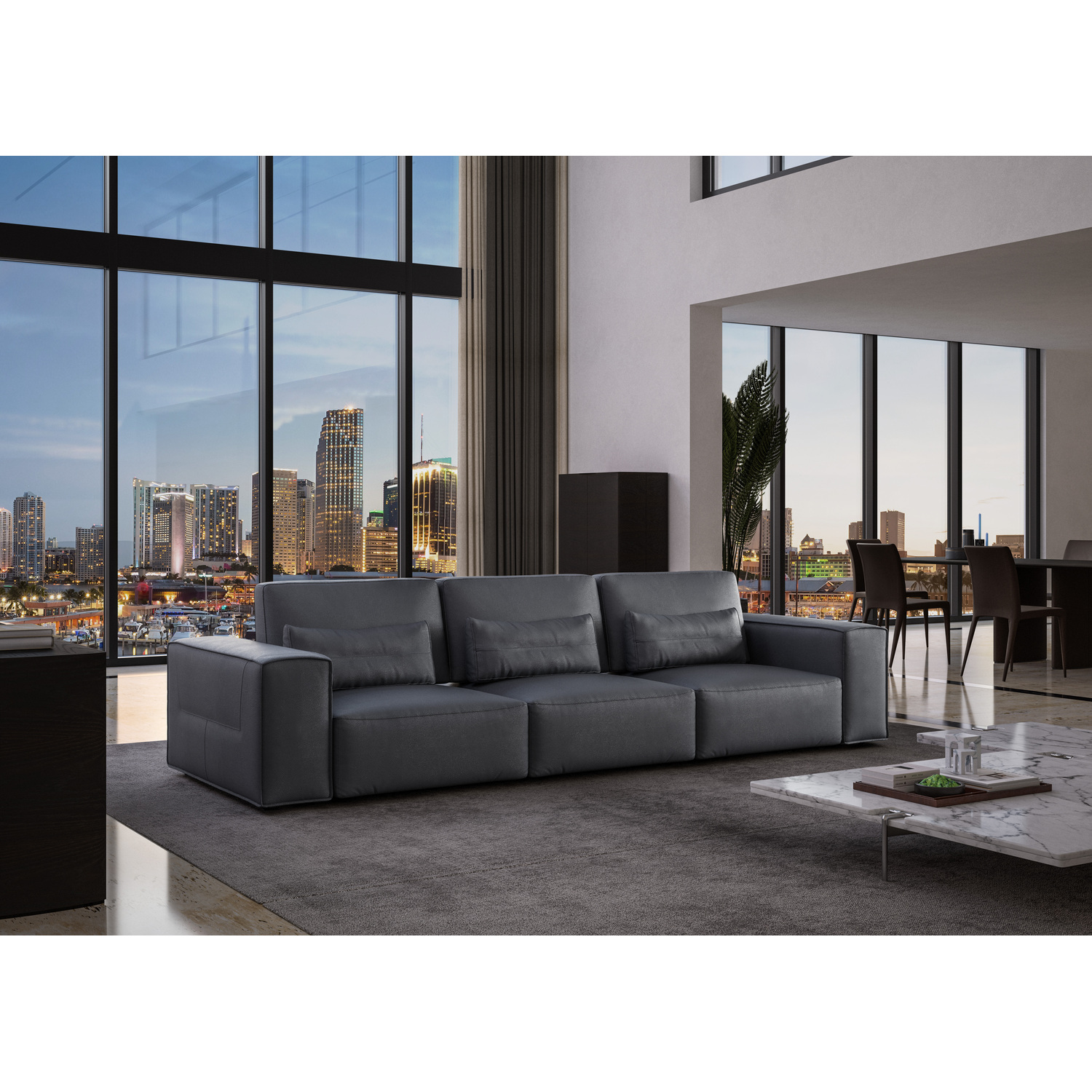 WhiteLine Florida 4 Seater Sofa, Dark Grey Italian Leather INZ-6511 , With Adjustable Backrest And Hidden Legs., 0696576759642, SO2001L-DGRY