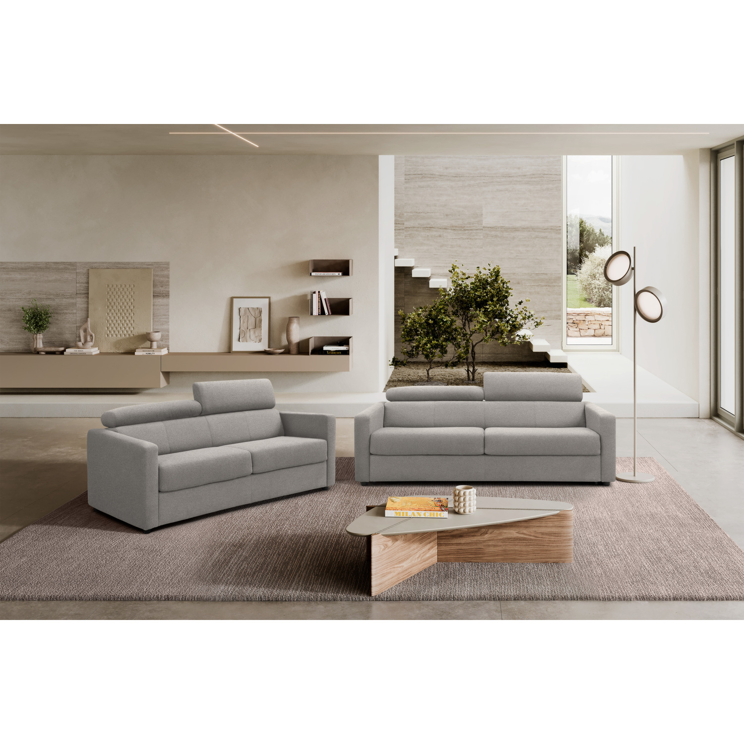 WhiteLine Balance Sofa Bed, Upholstered in Light Gray Fabric BMA-Loop18, With a Thermowelded Sleeper Mechanism, and Black Metal Legs., 0696576761089, SO2052F-LGRY