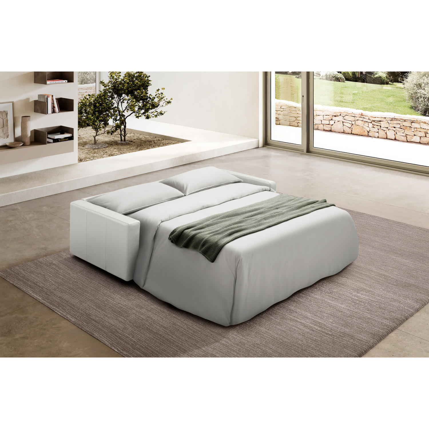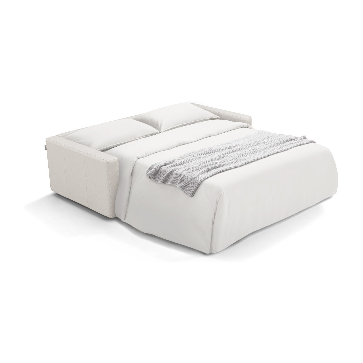 WhiteLine Balance Sofa Bed, Upholstered in White Genuine Leather BMA-B634, With a Thermowelded Sleeper Mechanism, and Black Metal Legs., 0696576761096, SO2052L-WHT