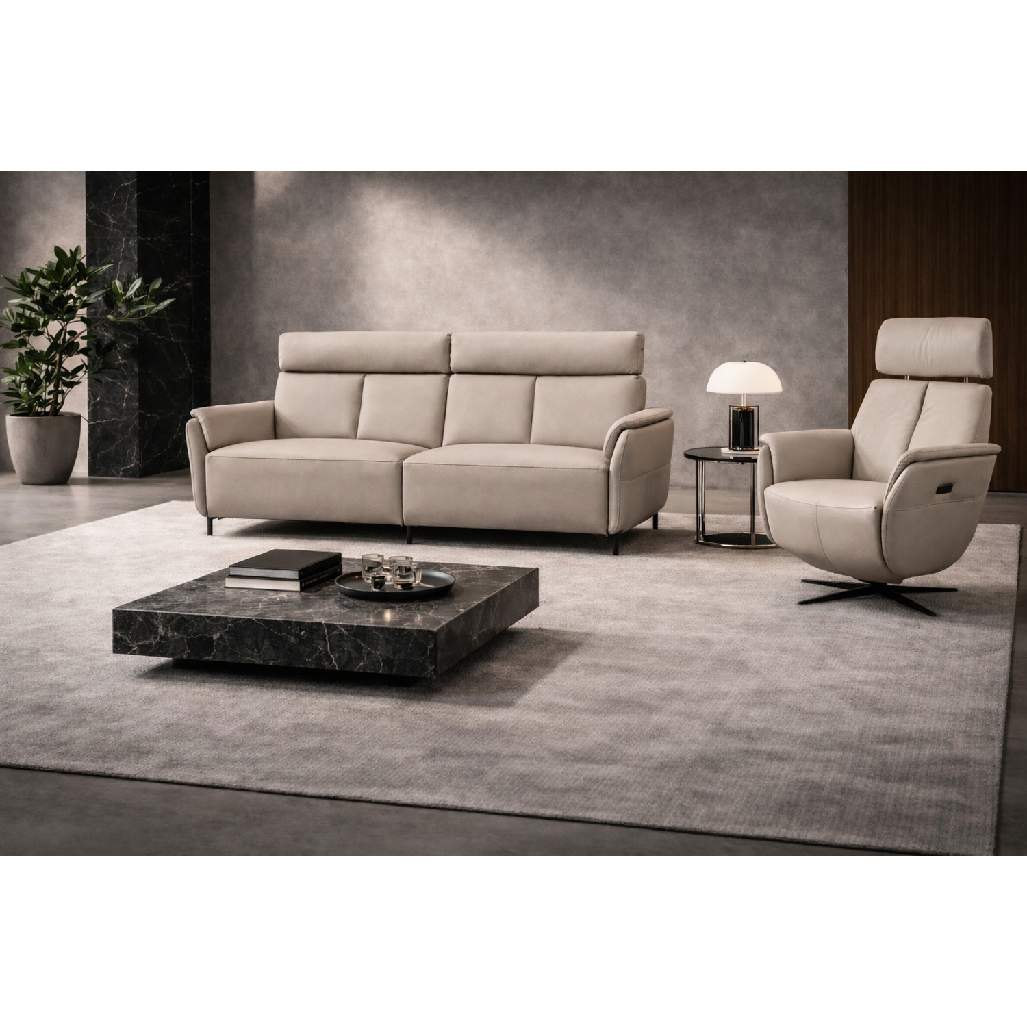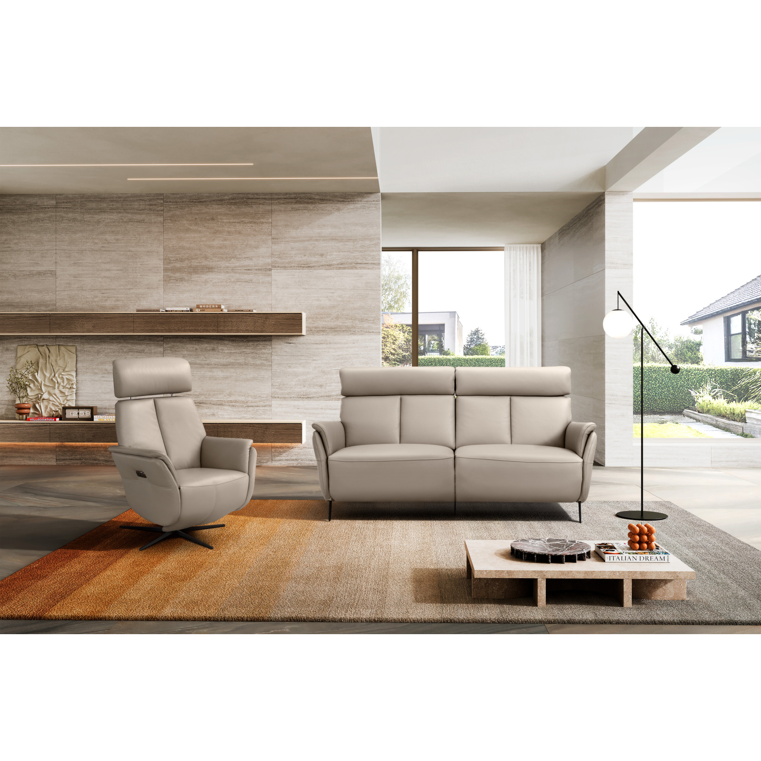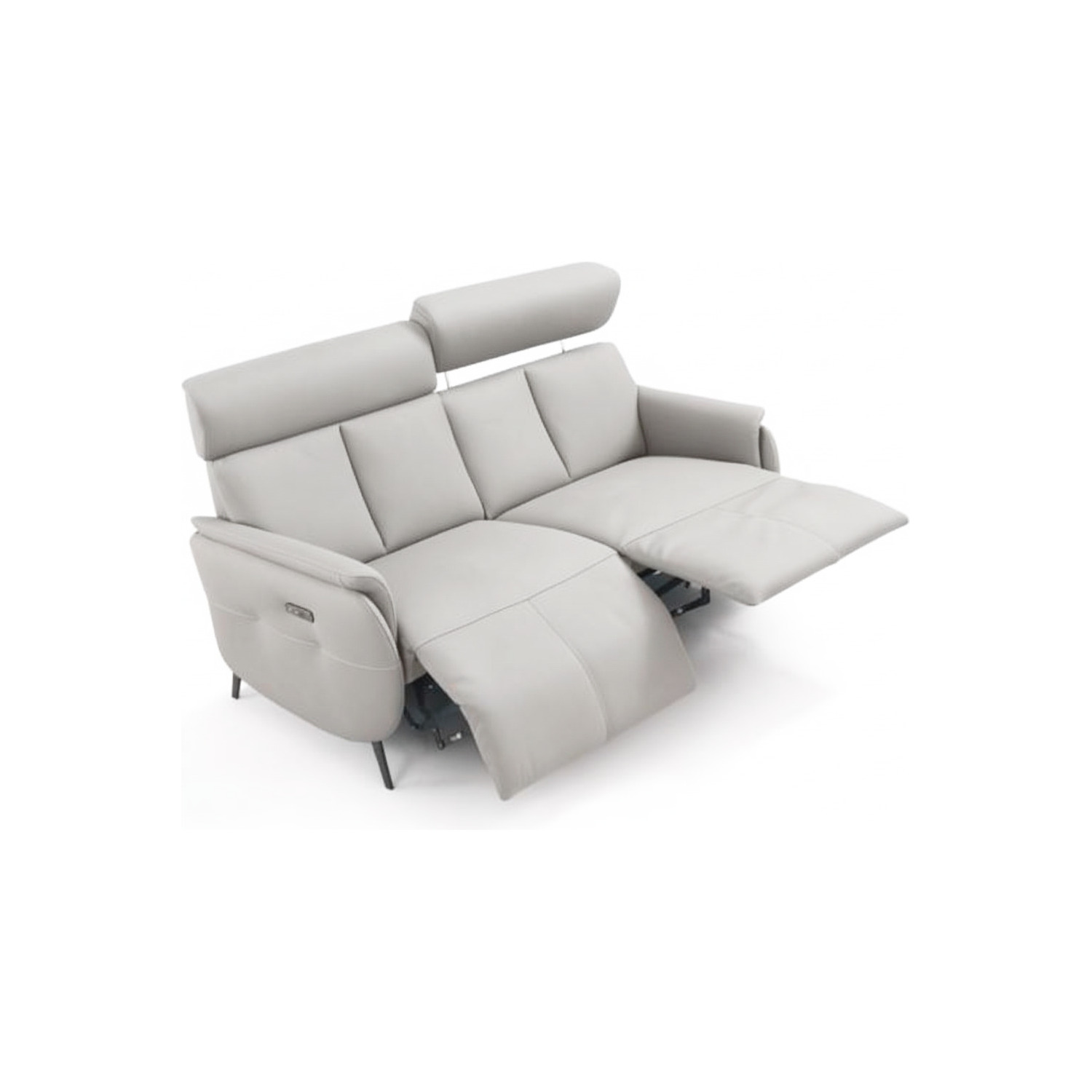 WhiteLine Beverly Sofa, Upholstered in Light Grey Genuine Leather BMA-B625, With an Electric Reclining Function at the Touch Of a Button, and Black Metal Legs., 0696576761133, SO2054L-LGRY