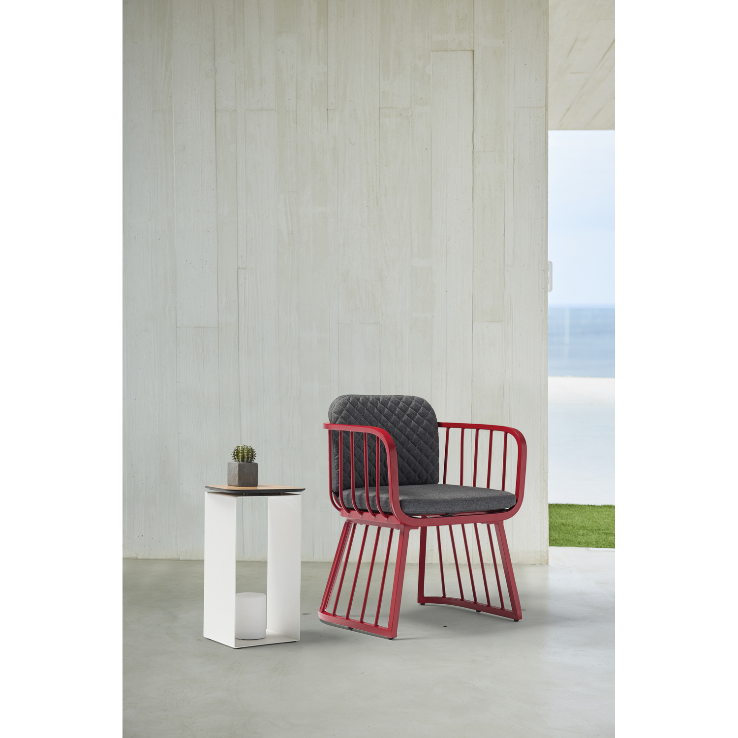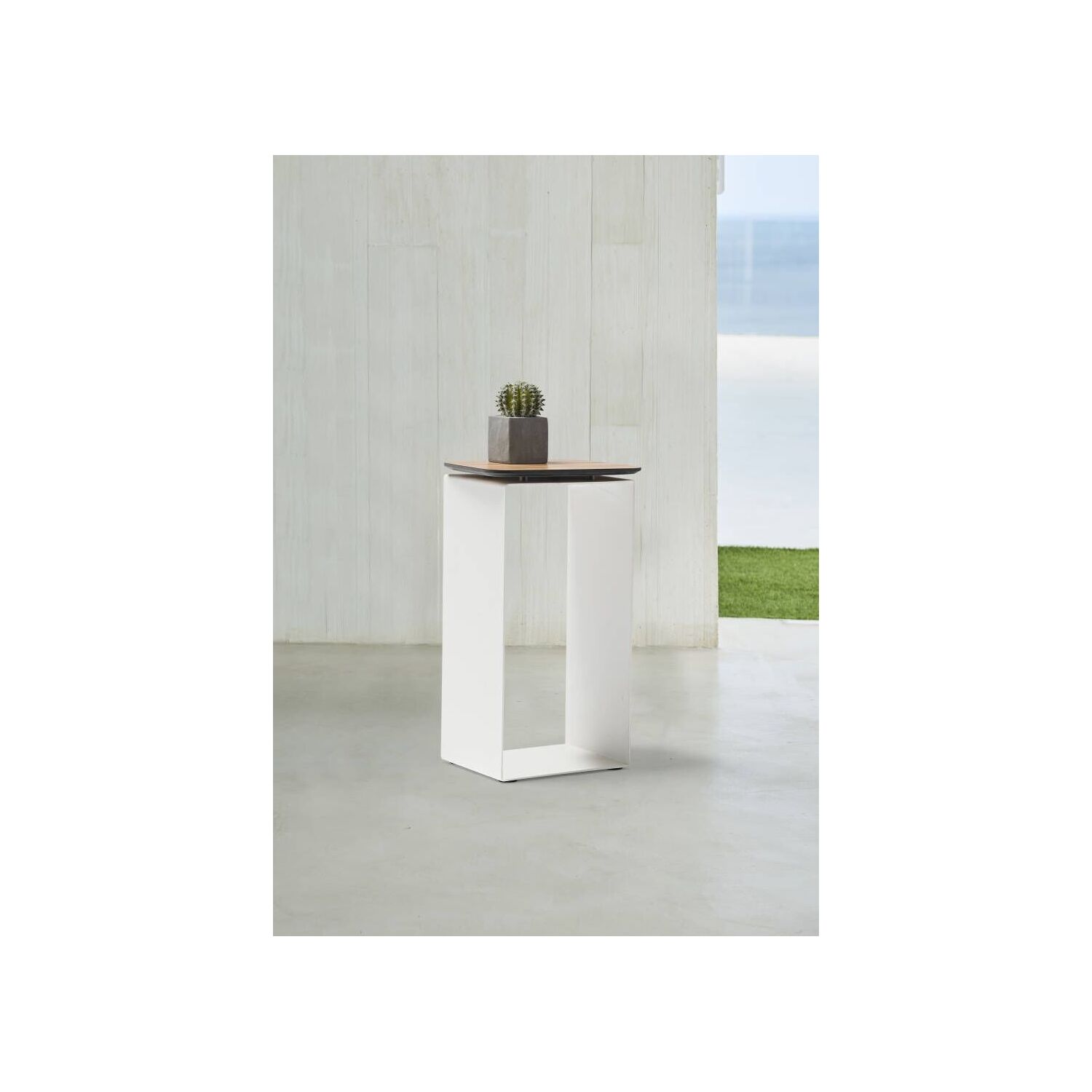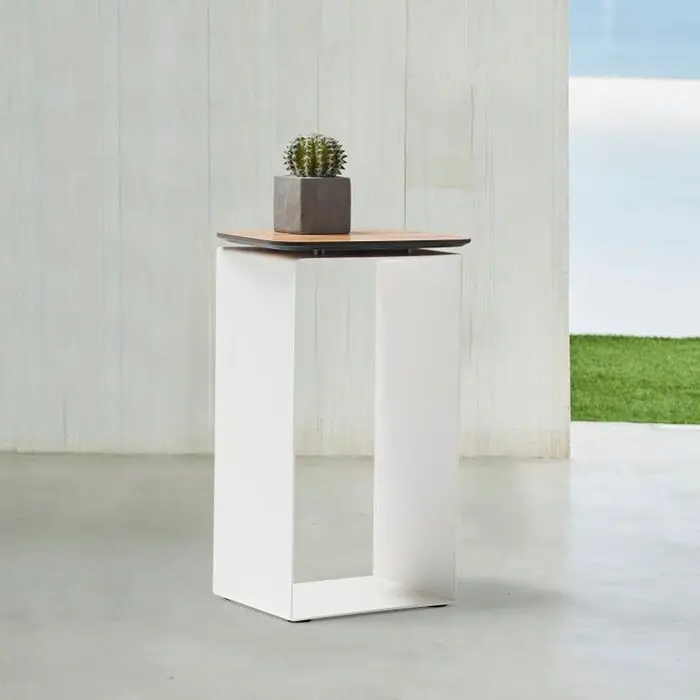 Petunia Side Table in White Powder-Coated Aluminum and Walnut Chinese HPL top