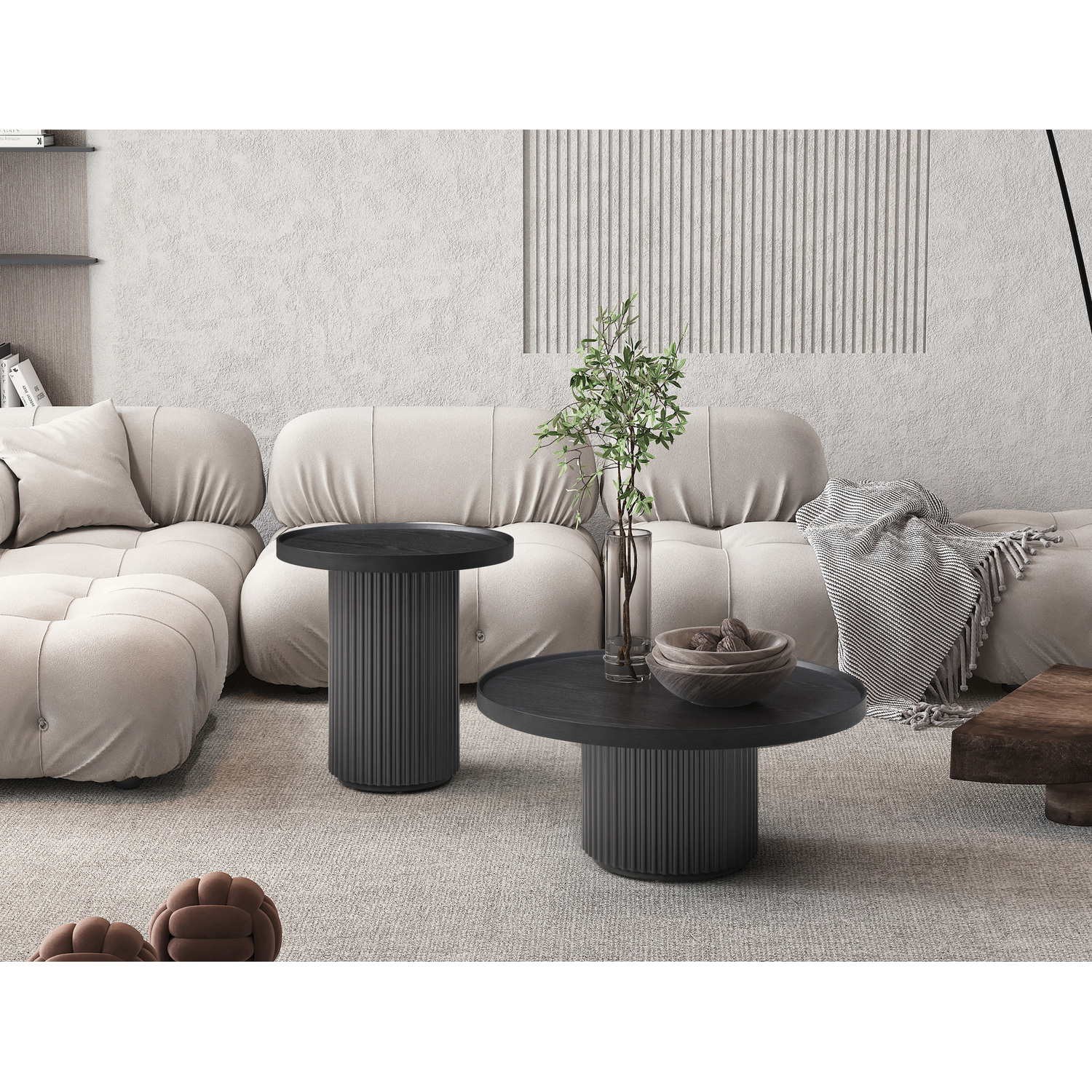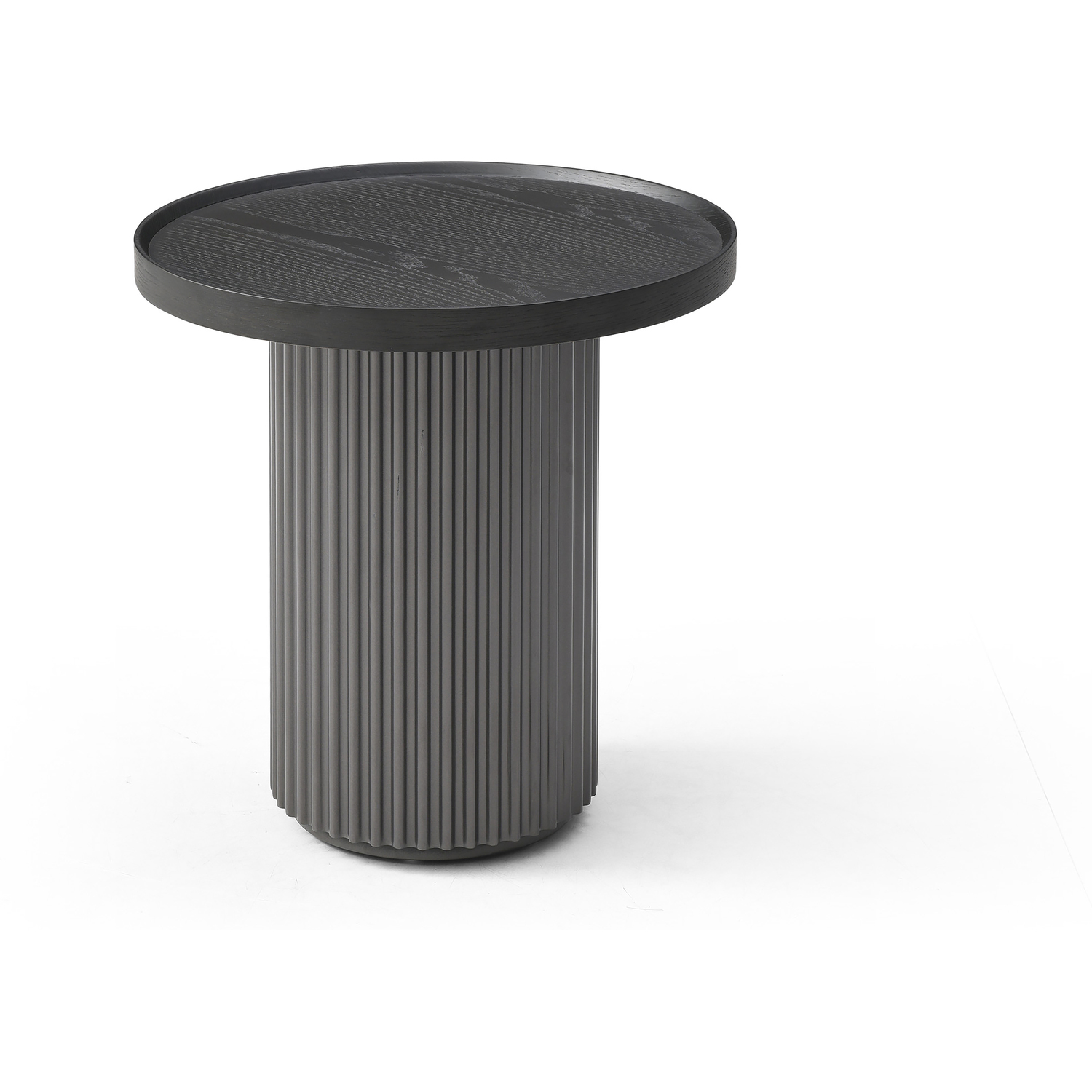 WhiteLine Heidi Round Side Table, Top in Smoke Oak EPI-1719-2, Ribbed Base in Dark Grey EPI-21003., 0696576757129, ST1842-DGRY