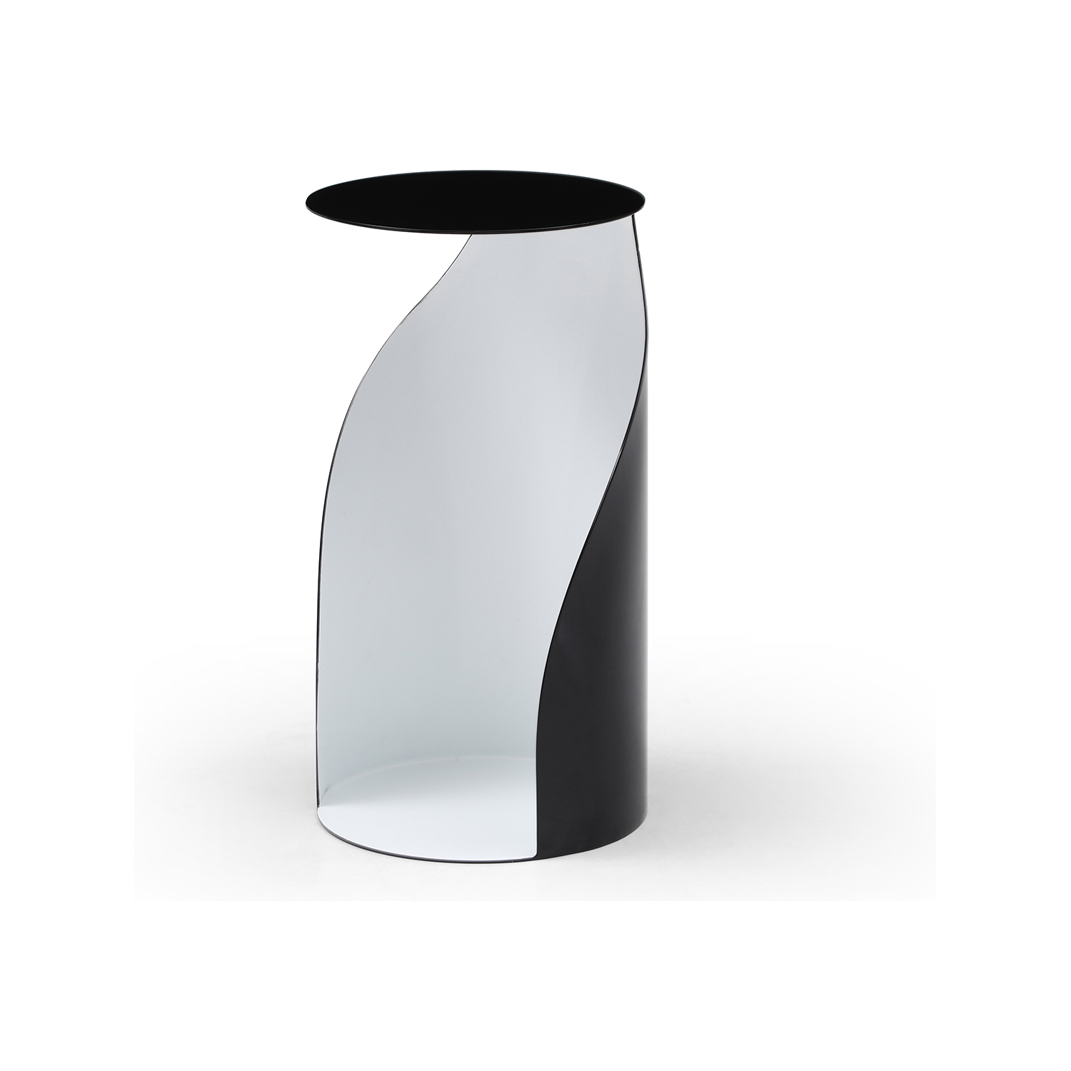 WhiteLine Willie Large Side Table, High Gloss Black Metal Structure, High Gloss White Metal on the Inside., 0696576755736, ST1874L-BLK/WHT