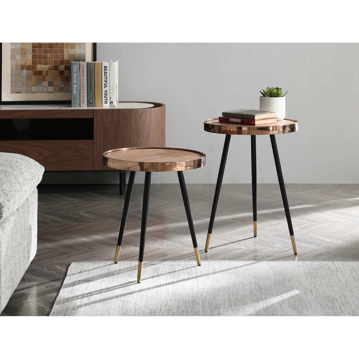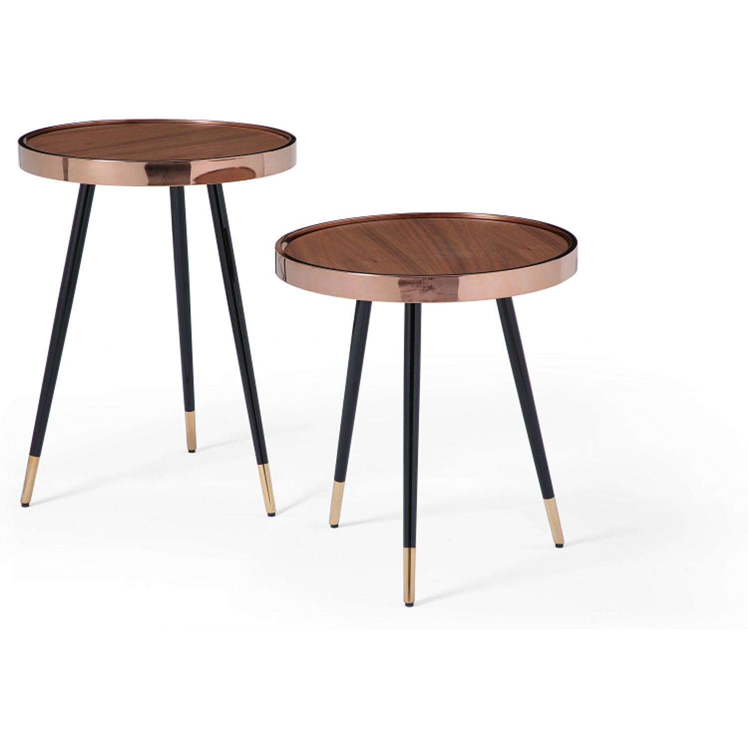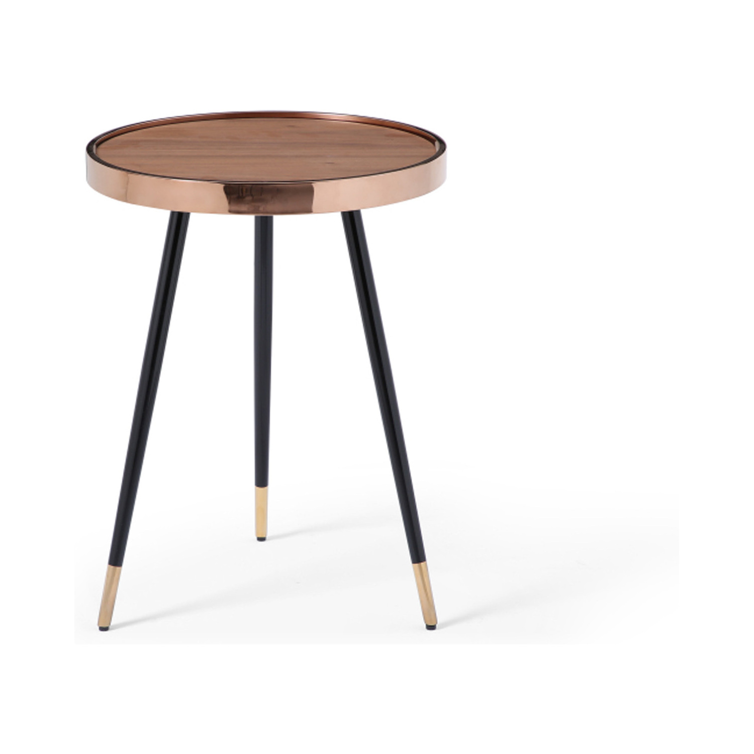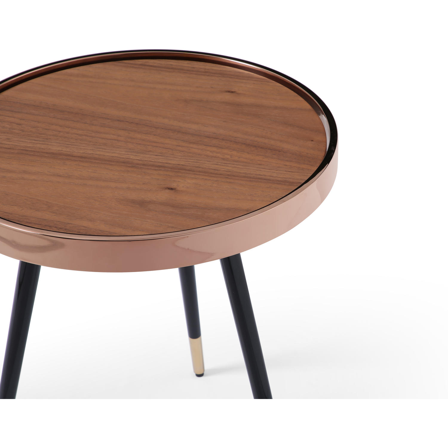 WhiteLine Meli Large Side Table, Walnut Veneer Top with Rose Gold Frame, Black Stainless Steel Legs with Rose Gold Caps., 0696576755859, ST1880L-WLT