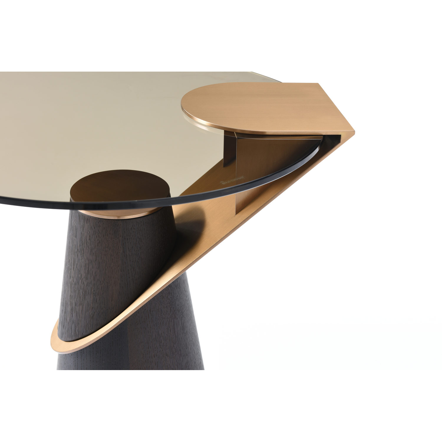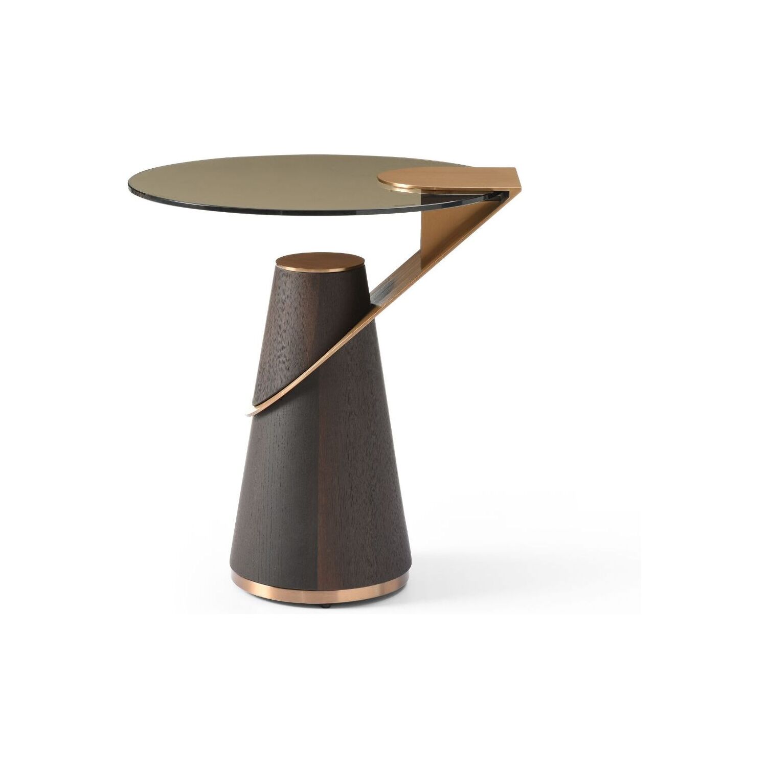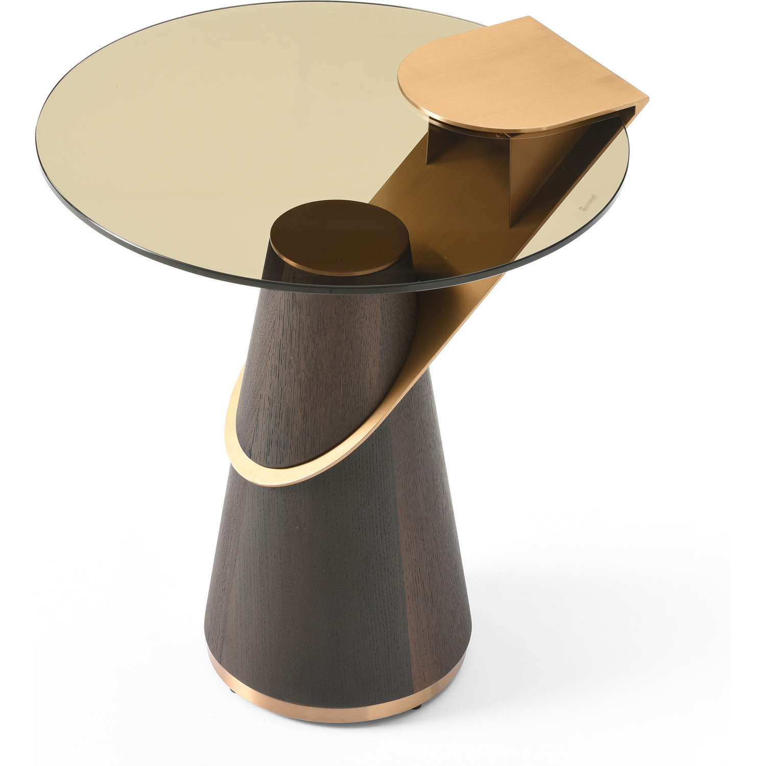 WhiteLine Zaria Side Table, Grey Glass Top EPI-A52 with Rose Gold Stainless-Steel Connector EPI-I003, Base in Metal and Smoke Oak Veneer EPI-1719 and Rose Gold Bottom Ring EPI-I003, 0696576756115, ST1896-BLK
