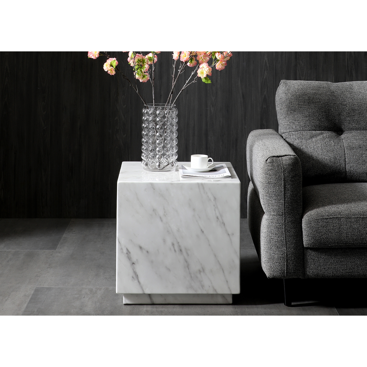 WhiteLine Iris Square Side Table, in High Gloss Black Marble SOC-1022, 0696576759901, ST1927-BLK