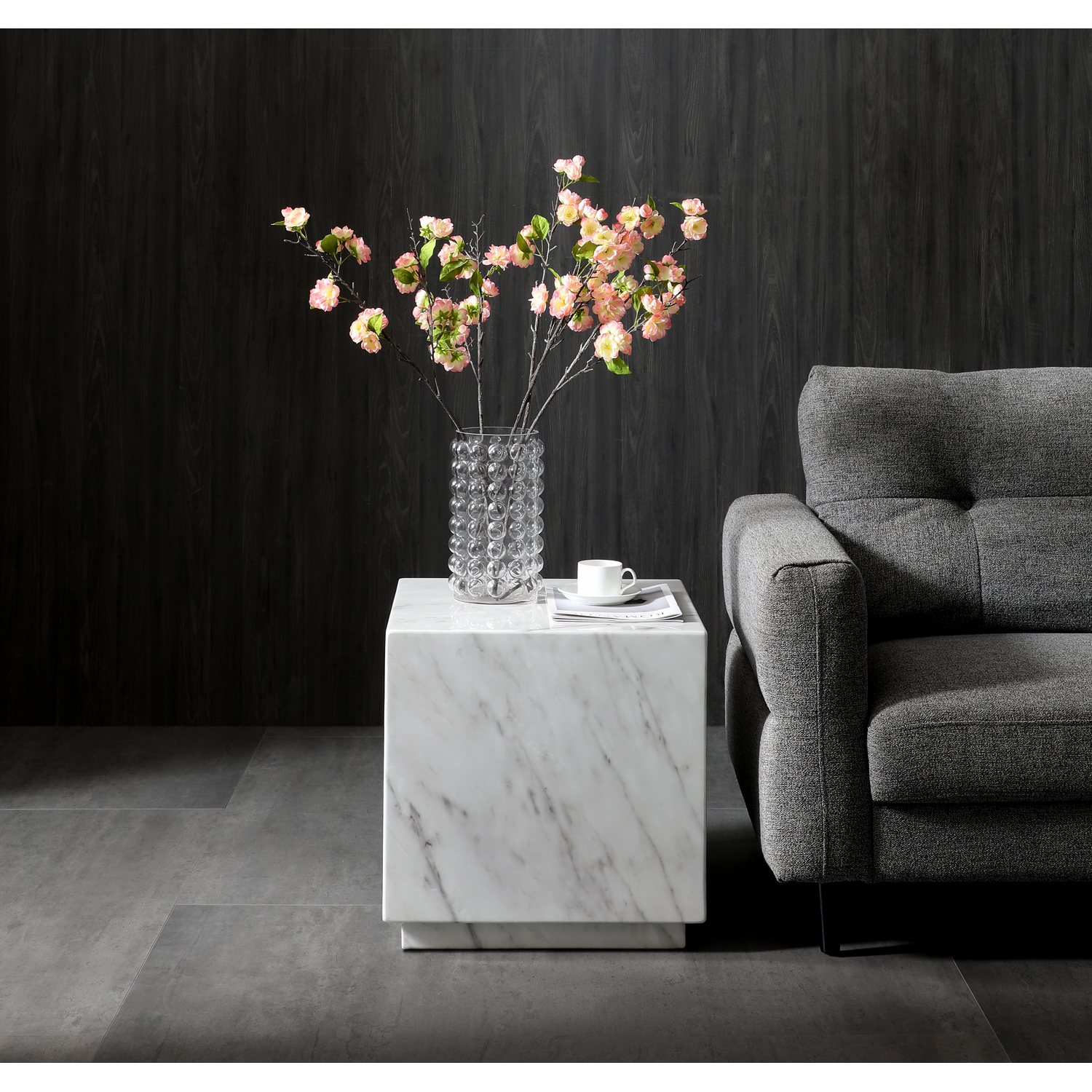 WhiteLine Iris Square Side Table, in High Gloss White Marble SOC-5227-3, 0696576759925, ST1927-WHT