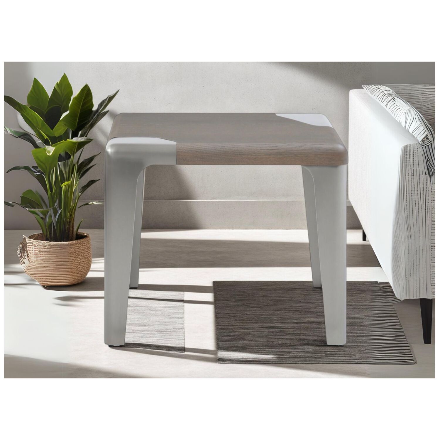 WhiteLine Elena Square Side Table, Top covered in Light Grey Ash Veneer Matte Finish OHM-MP2308, With Brushed Nickel Stainless Steel Base OHM-WJ01., 0696576760525, ST2029-GRY