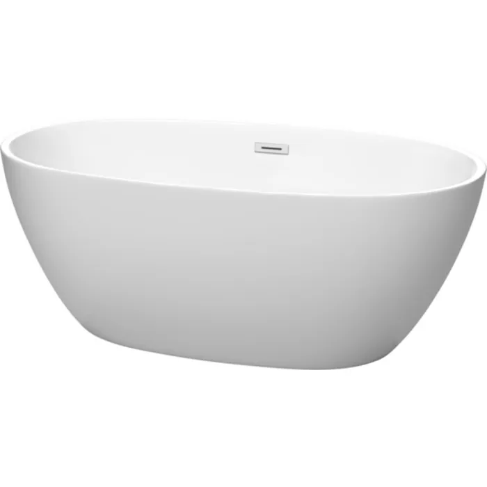 Juno 59 Inch Freestanding Bathtub in Matte White with Polished Chrome Drain and Overflow Trim