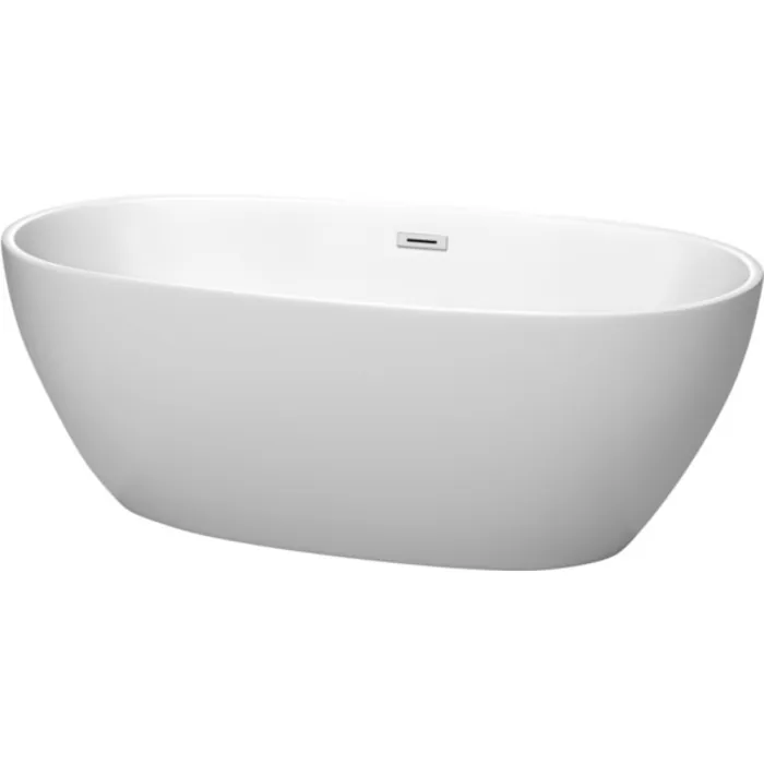 Juno 63 Inch Freestanding Bathtub in Matte White with Polished Chrome Drain and Overflow Trim
