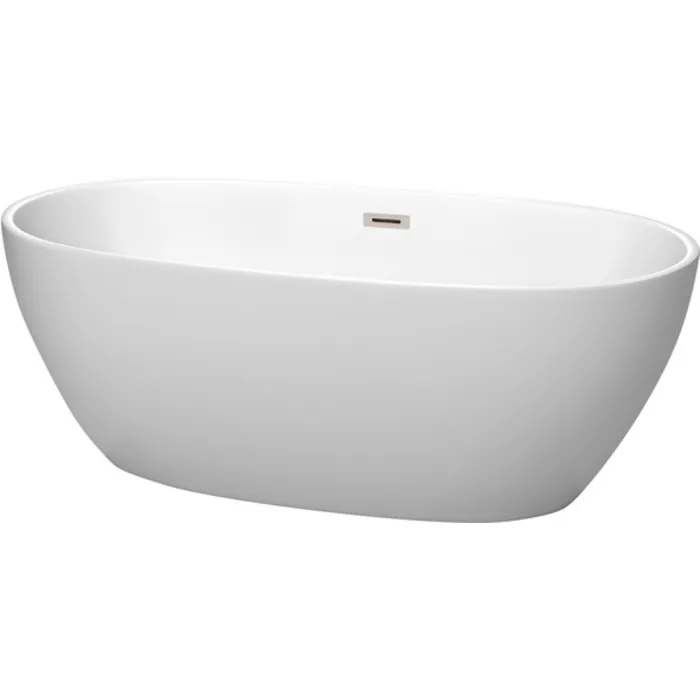 Juno 63 Inch Freestanding Bathtub in Matte White with Brushed Nickel Drain and Overflow Trim