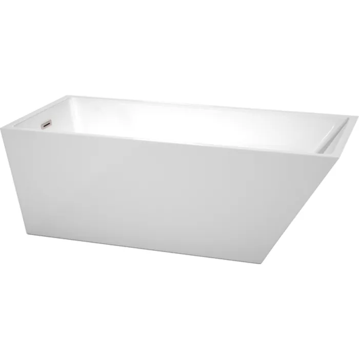 Wyndham Collection 67 Inch Freestanding Bathtub In White With Brushed Nickel Drain And Overflow Trim WCBTK150167BNTRIM