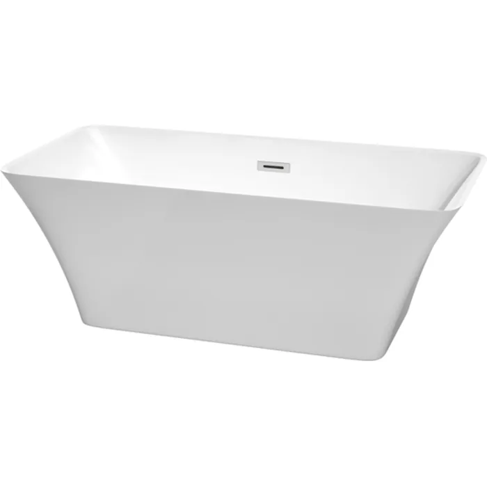Wyndham Collection WCBTK150459 59 In. Center Drain Soaking Tub In White With Chrome Drain