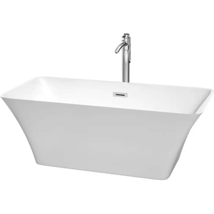 Wyndham Collection WCBTK150459ATP11PC 59 In. Center Drain Soaking Tub In White With Floor Mounted Faucet In Chrome