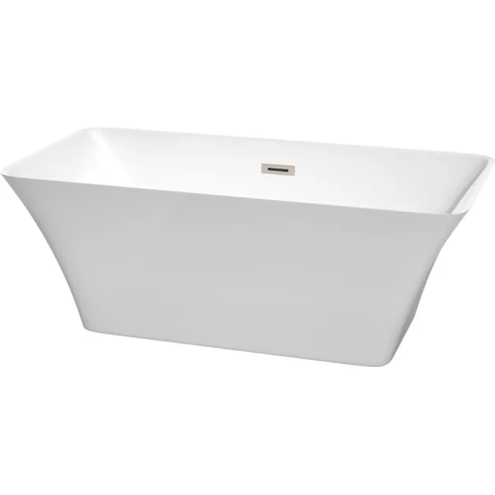 Wyndham Collection 59 Inch Freestanding Bathtub In White With Brushed Nickel Drain And Overflow Trim WCBTK150459BNTRIM