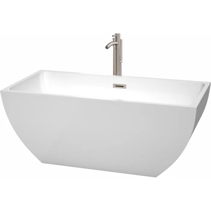 Wyndham Collection 59 Inch Freestanding Bathtub In White With Floor Mounted Faucet, Drain And Overflow Trim In Brushed Nickel WCBTK150559ATP11BN