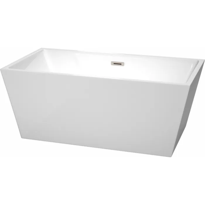Wyndham Collection 59 Inch Freestanding Bathtub In White With Brushed Nickel Drain And Overflow Trim WCBTK151459BNTRIM