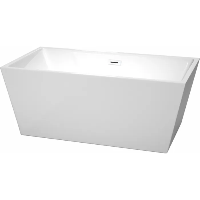 Sara 59 Inch Freestanding Bathtub in White with Shiny White Drain and Overflow Trim
