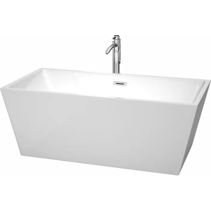Wyndham Collection WCBTK151463ATP11PC 63 In. Center Drain Soaking Tub In White With Floor Mounted Faucet In Chrome