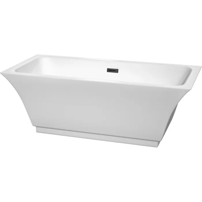 Galina 67 Inch Freestanding Bathtub in White with Matte Black Drain and Overflow Trim