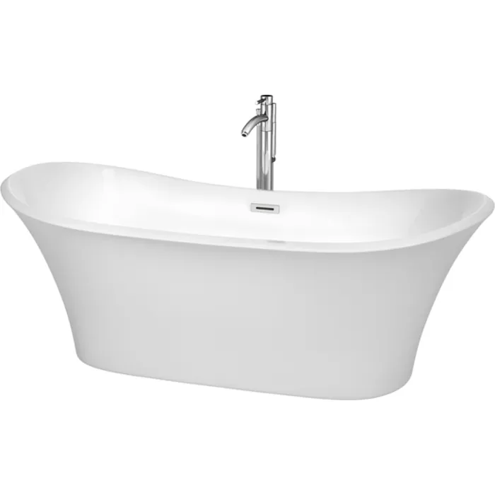 Wyndham Collection 71 Inch Freestanding Bathtub In White With Floor Mounted Faucet, Drain And Overflow Trim In Polished Chrome WCBTK152871ATP11PC