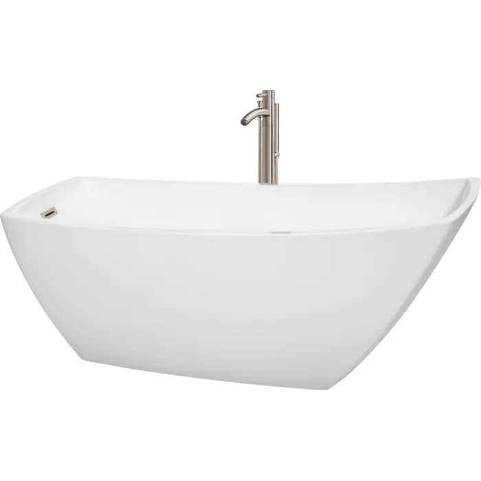 Wyndham Collection 67 Inch Freestanding Bathtub In White With Floor Mounted Faucet, Drain And Overflow Trim In Brushed Nickel WCBTK153367ATP11BN