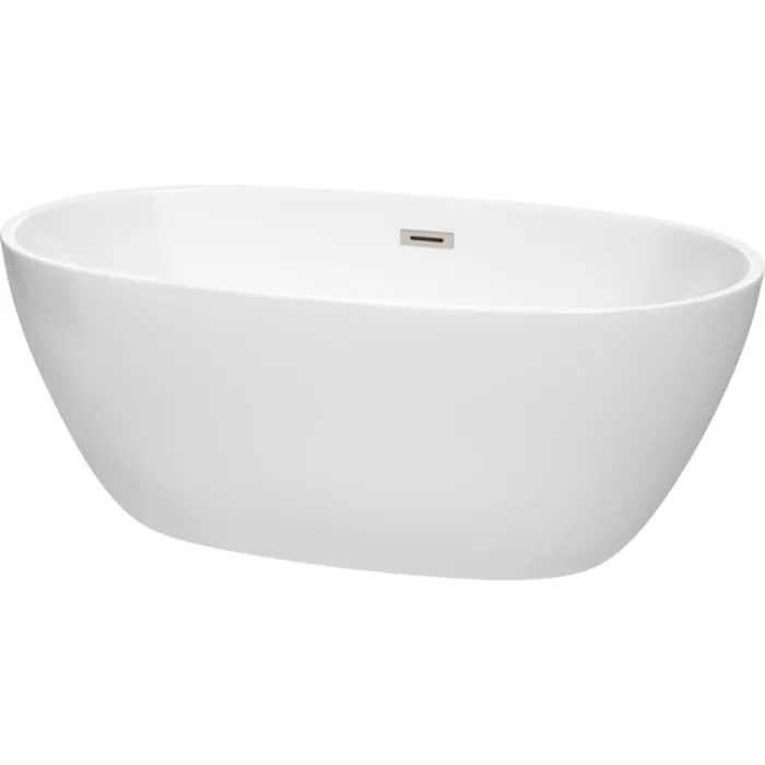 Wyndham Collection 59 Inch Freestanding Bathtub In White With Brushed Nickel Drain And Overflow Trim WCBTK156159BNTRIM